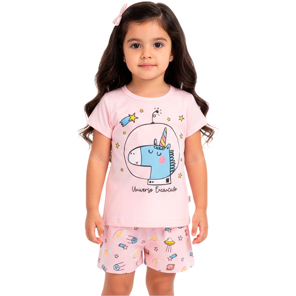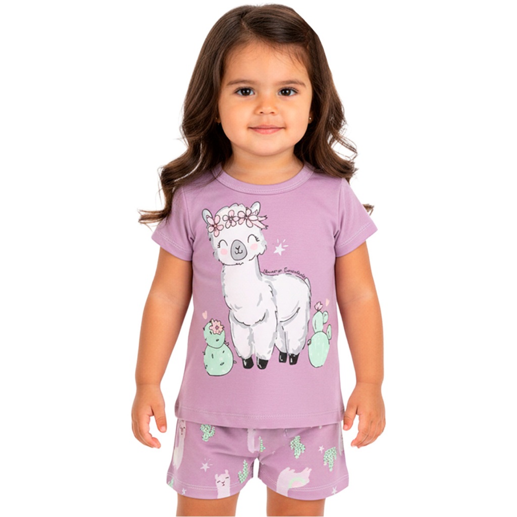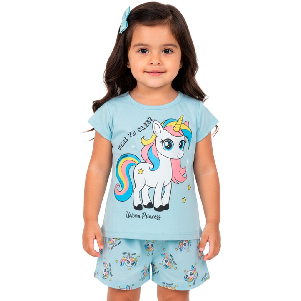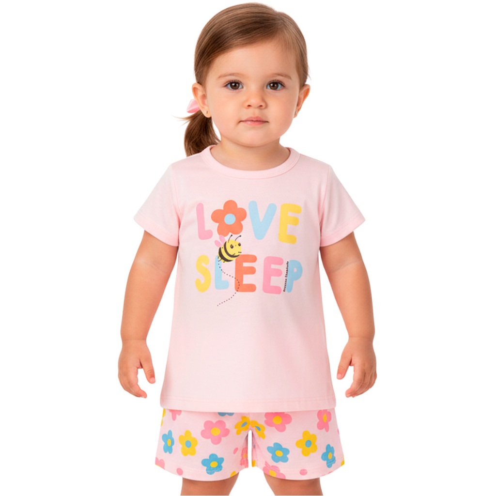 Pijama Infantil Bebê Menina Manga Curta com Estampas Fofas e Conforto Roupa para Bebê Feminino Verão Calor L05
