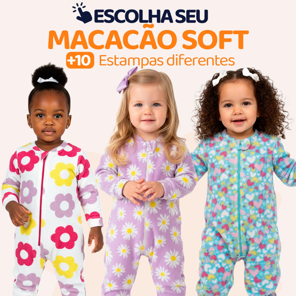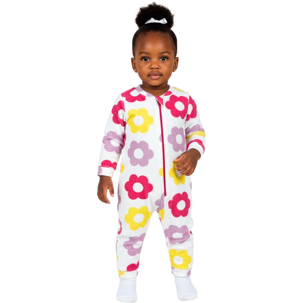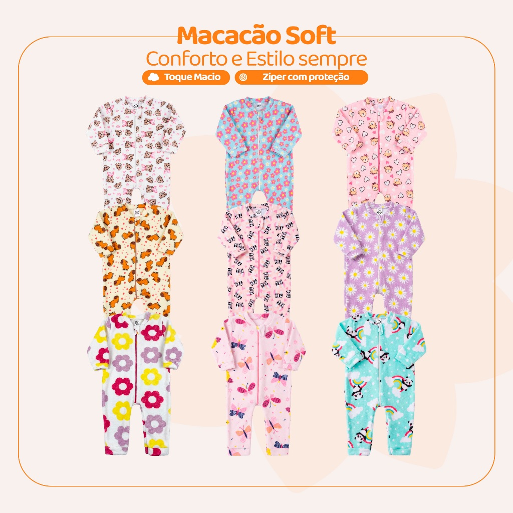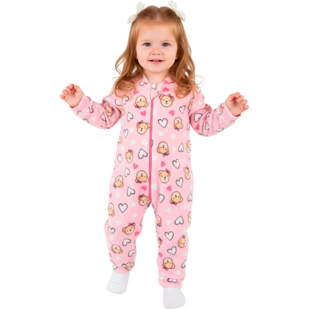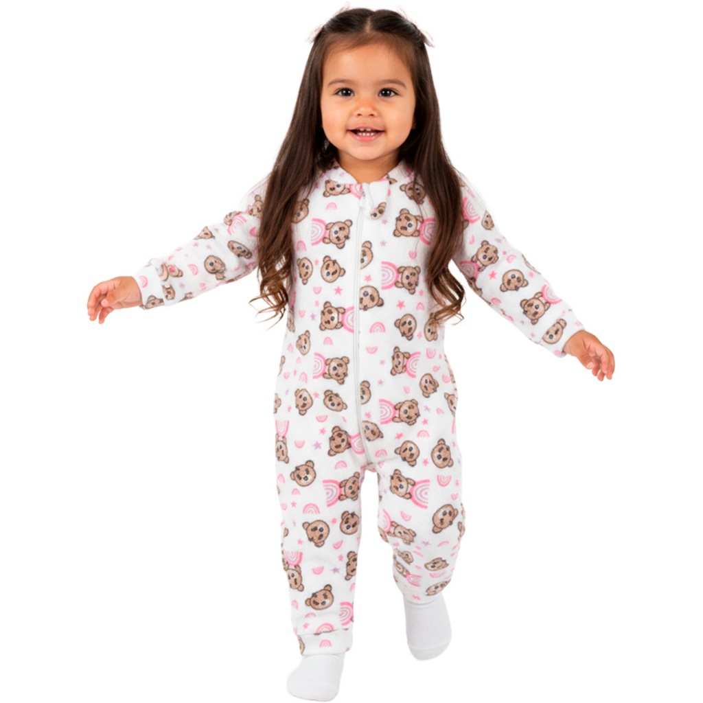 Escolha Seu Macacão Bebe Menina Roupa Inverno Soft Peluciado Com Zíper Quentinho Confortável Panda, Ursinho, Florido L09