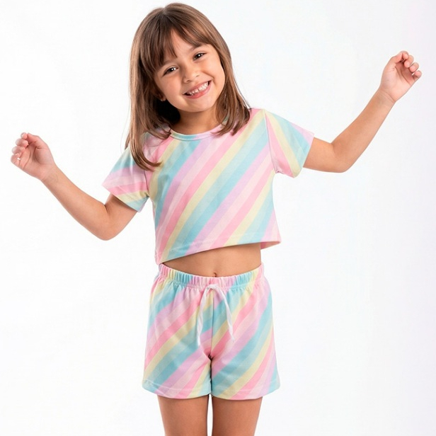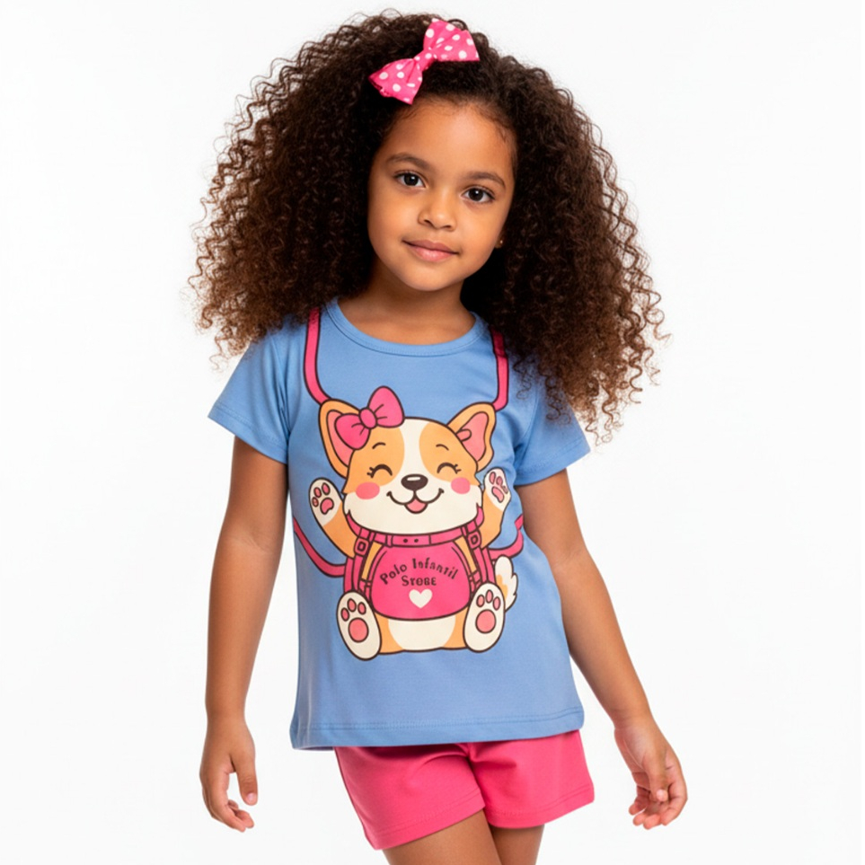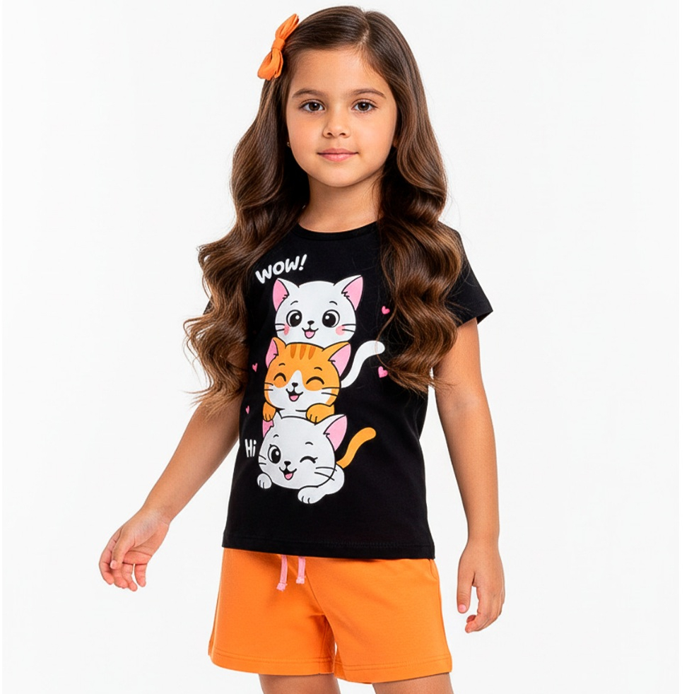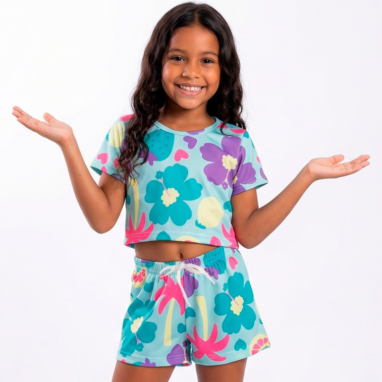 Escolha Seu Conjunto Infantil De Menina Verão Blusa Manga Curta E Shorts Roupa de Menina em Algodão Tamanhos 2 a 10 L04