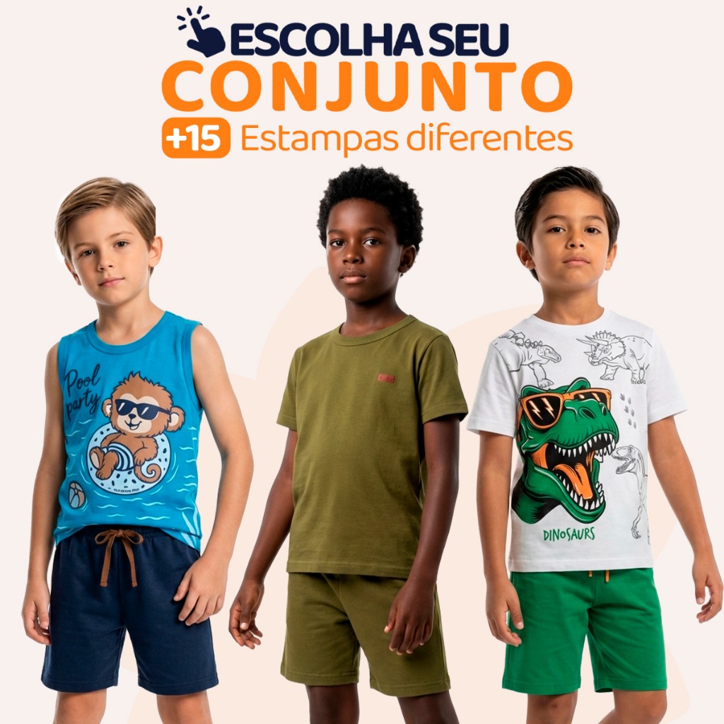 Conjunto Infantil Menino Verão Manga Curta Tamanho 2 ao 10 Roupa Infantil Masculino verão camiseta e short L04