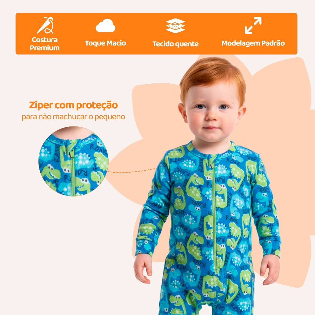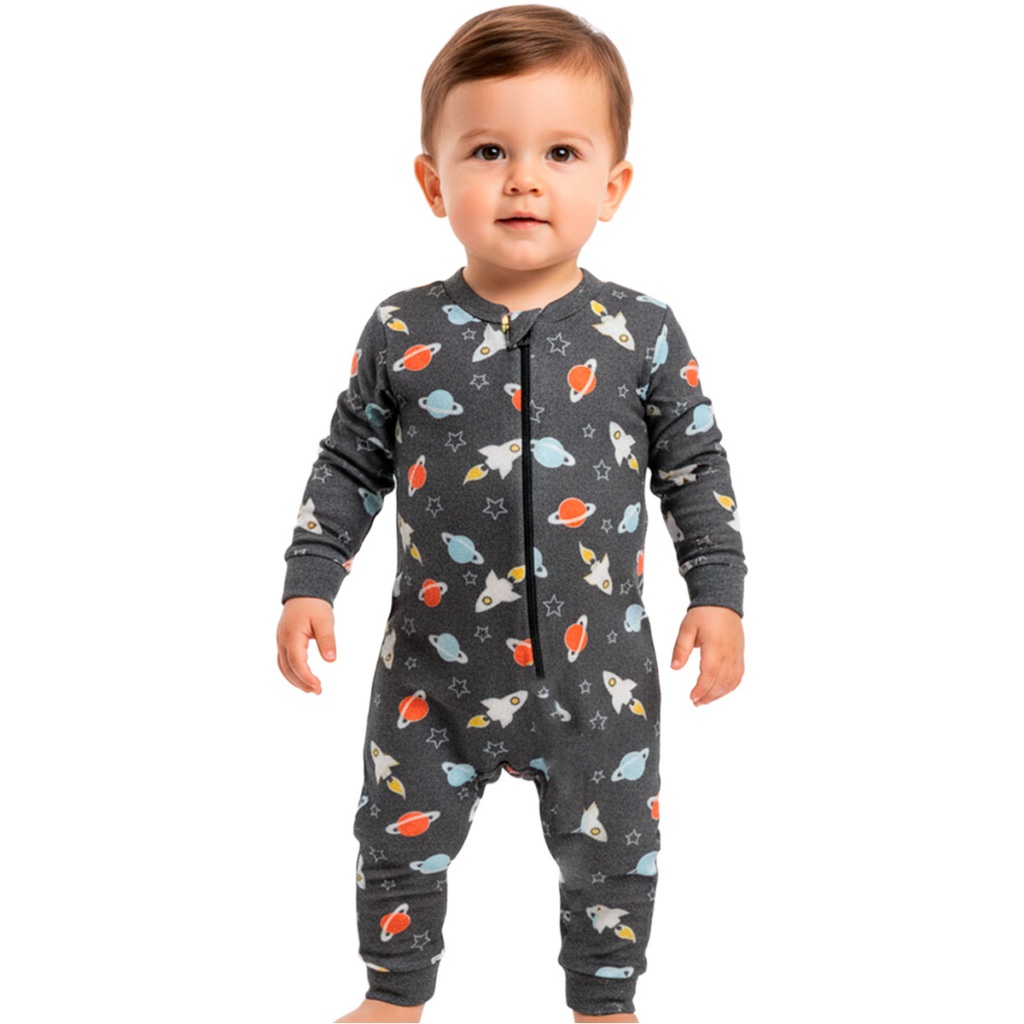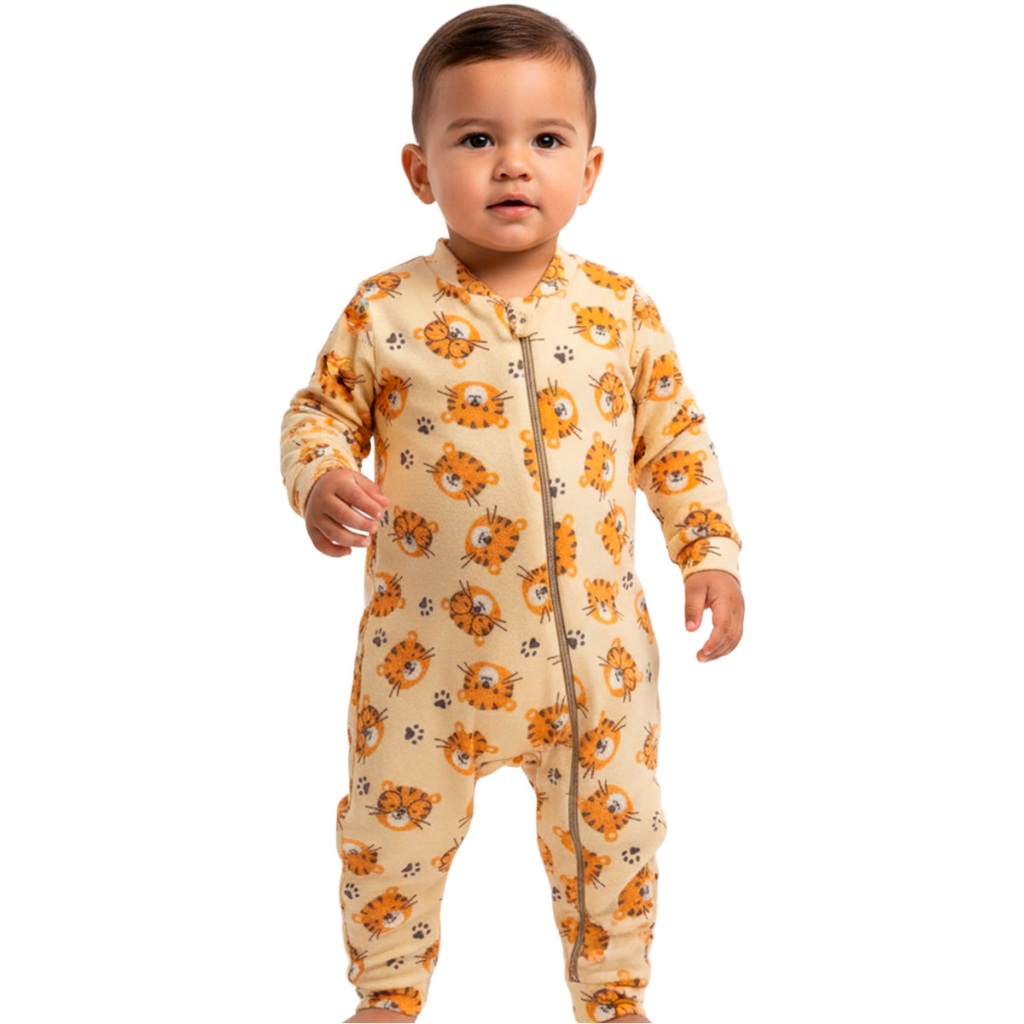 Escolha Macacão Bebe Menino Roupa Inverno Soft Peluciado Com Zíper Quentinho e Confortável, Safari, Astronauta, Leão L09