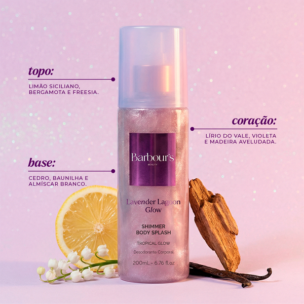 Body Splash Glitter Shimmer com Brilho Golden Pink Lavender Blue Moonlight Barbour's 200ml