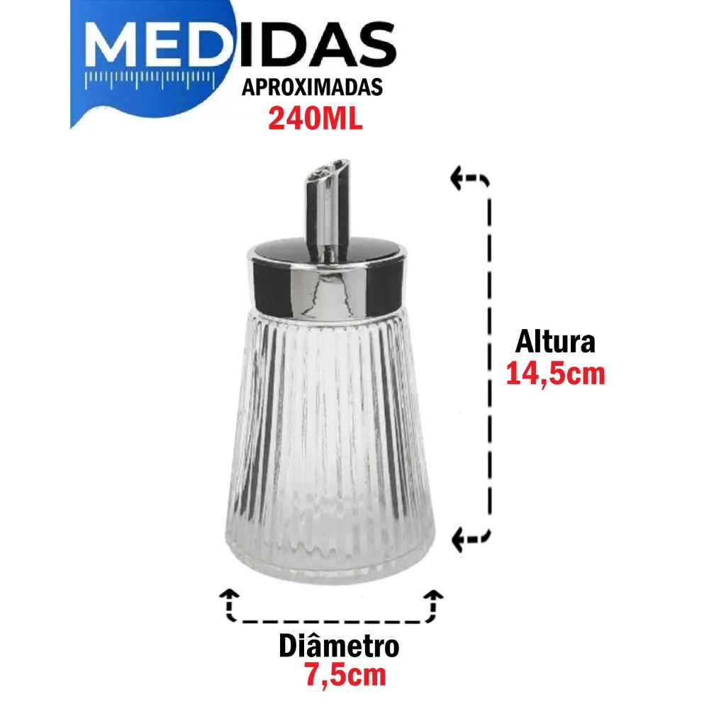 Kit 2 Açucareiro Vidro Grafiato Bico Dosador 240ml Cozinha Le Bianco
