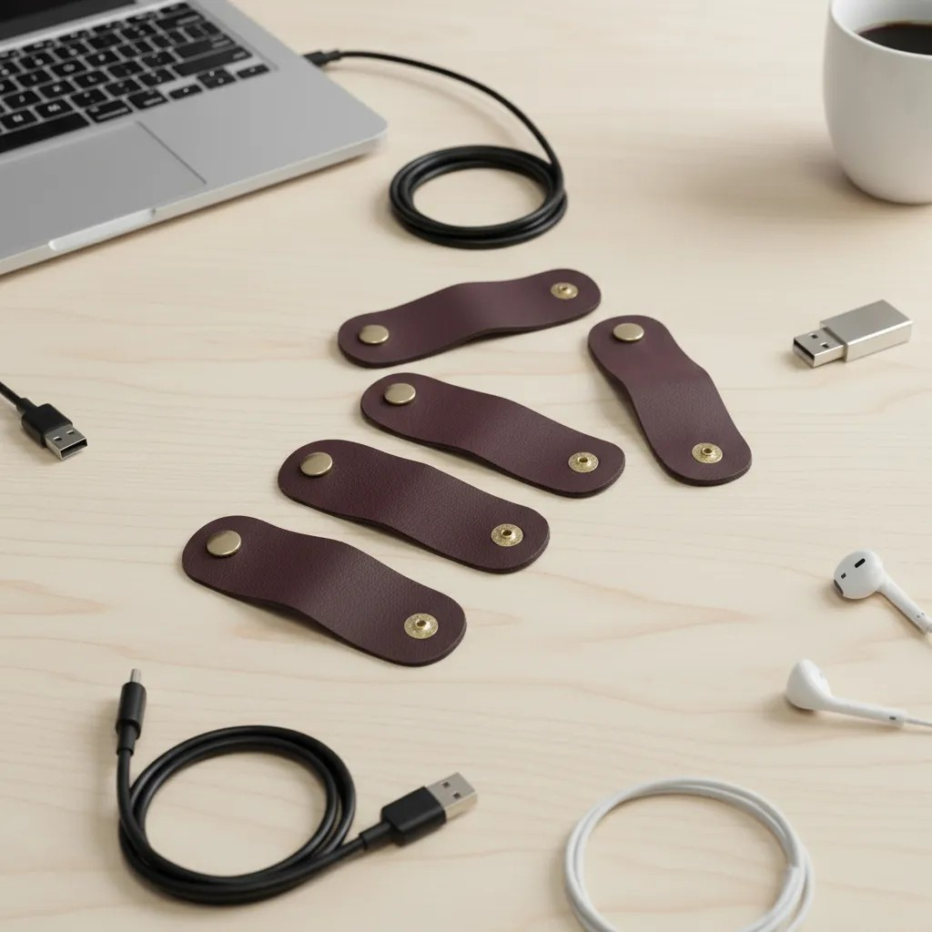 6 Porta Cabo Presilhas Abraçadeira Em Couro Sintético Para Chicote Fios cabos fone Organiza GetShow