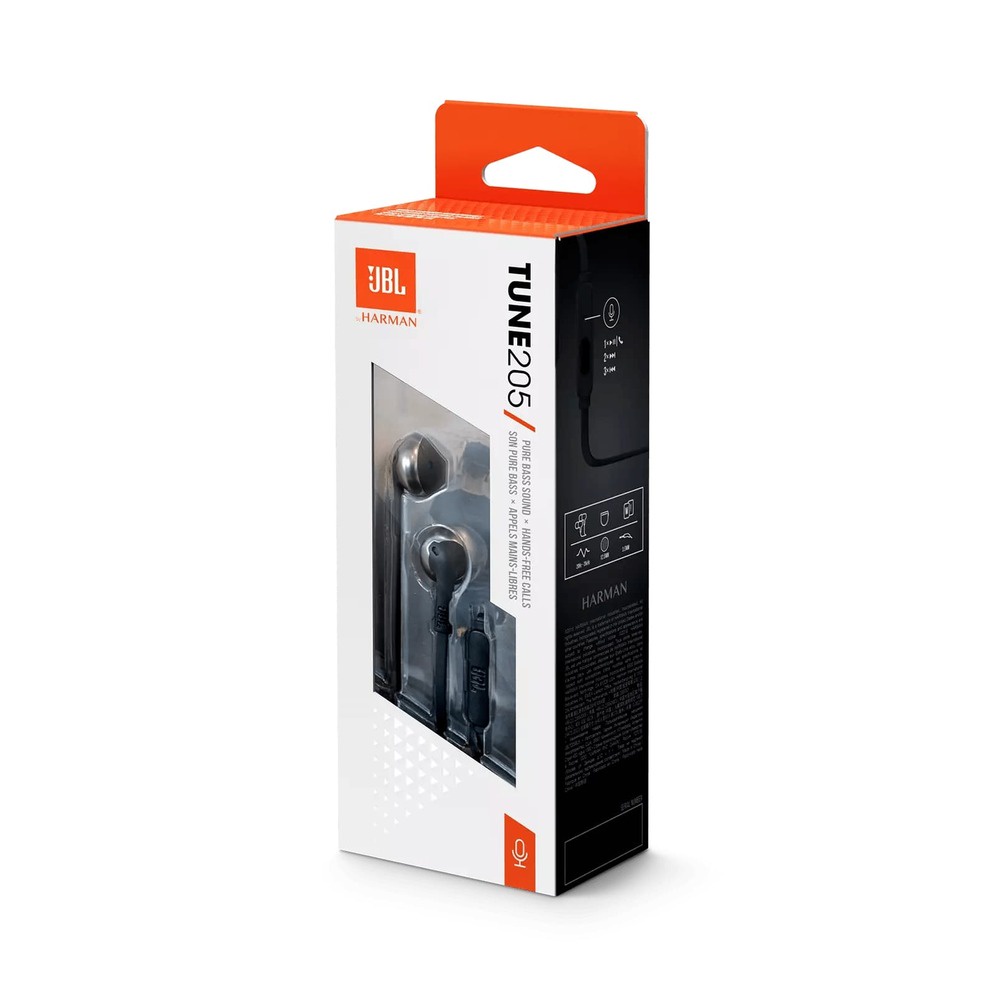 Fone de Ouvido JBL Tune 205 Preto Cinza Pure Bass com Microfone