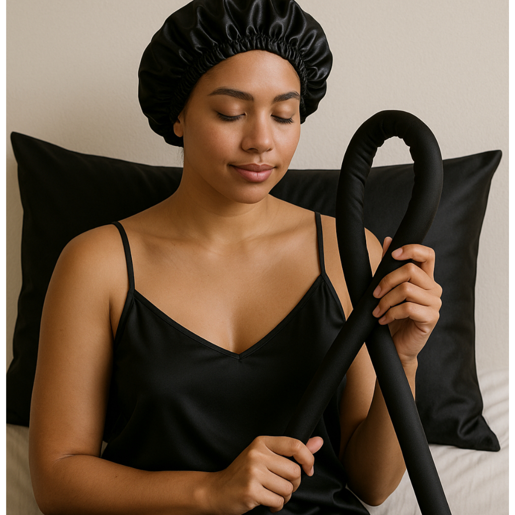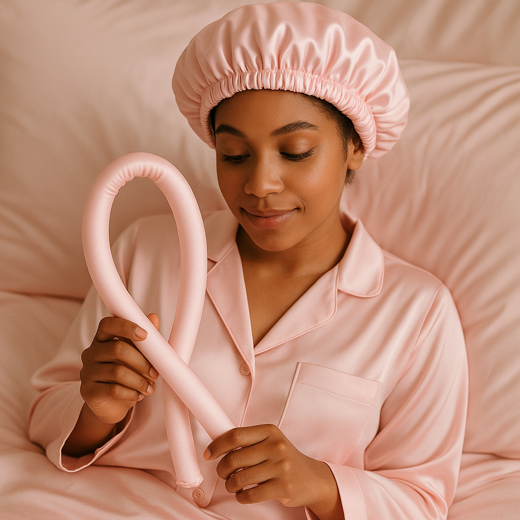 Touca cetim anti frizz + modelador curling rod + 2 brindes