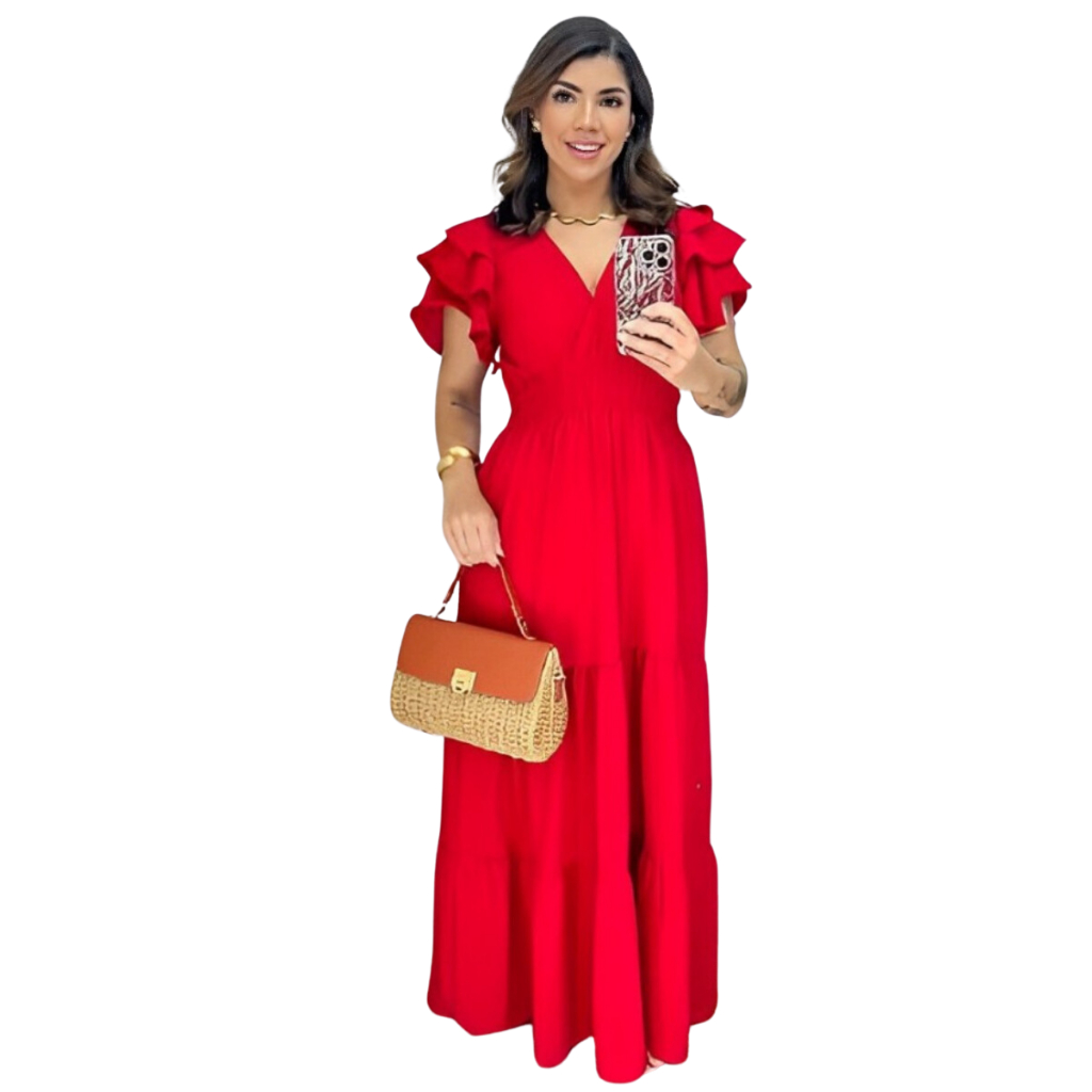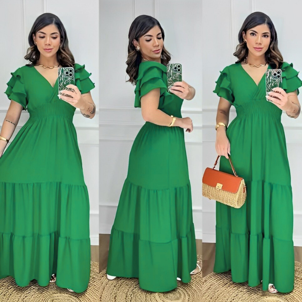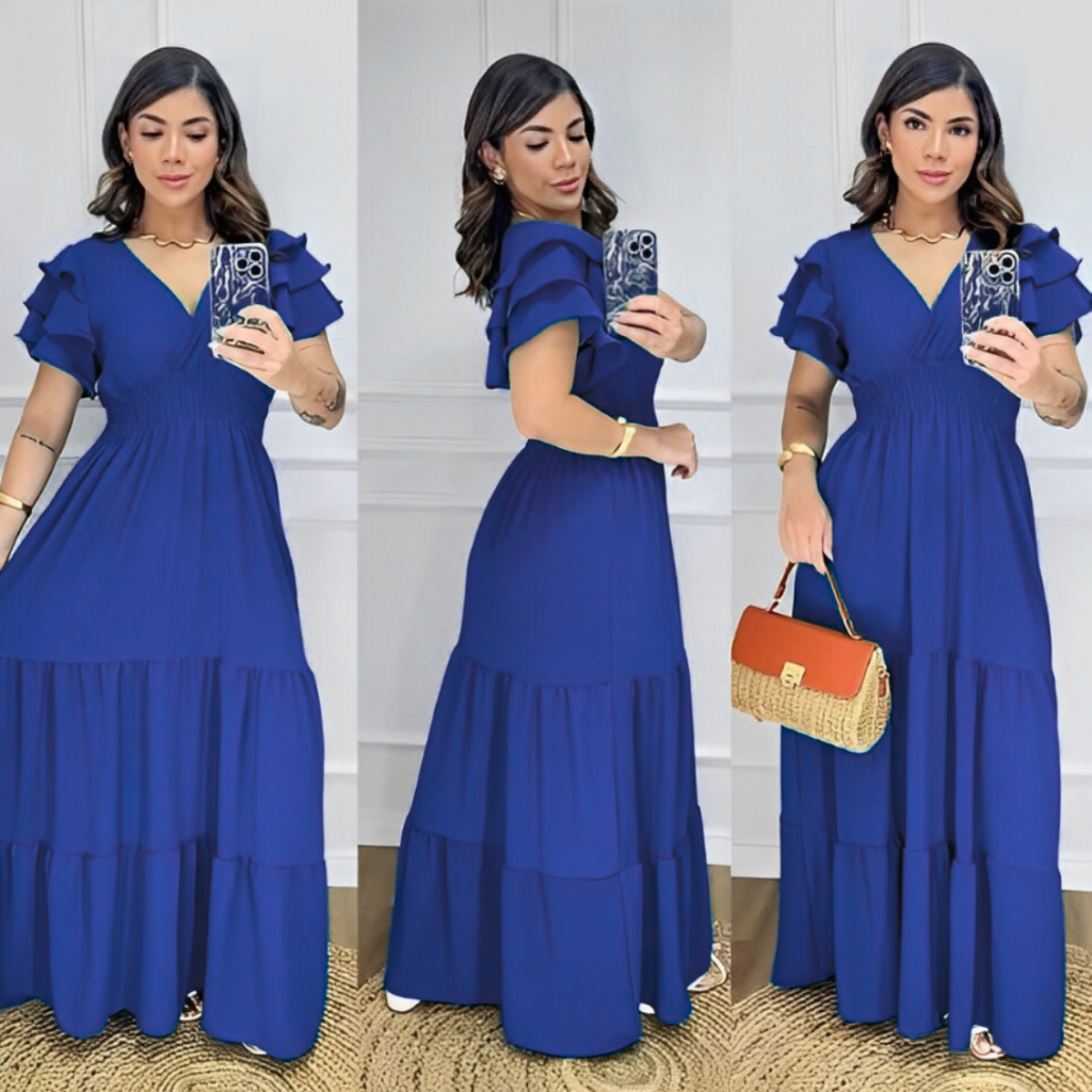 Vestido Feminino Longo Manga Curta Saia 3 Marias Duna Casameto Evangelico Formatura Dia das Mães