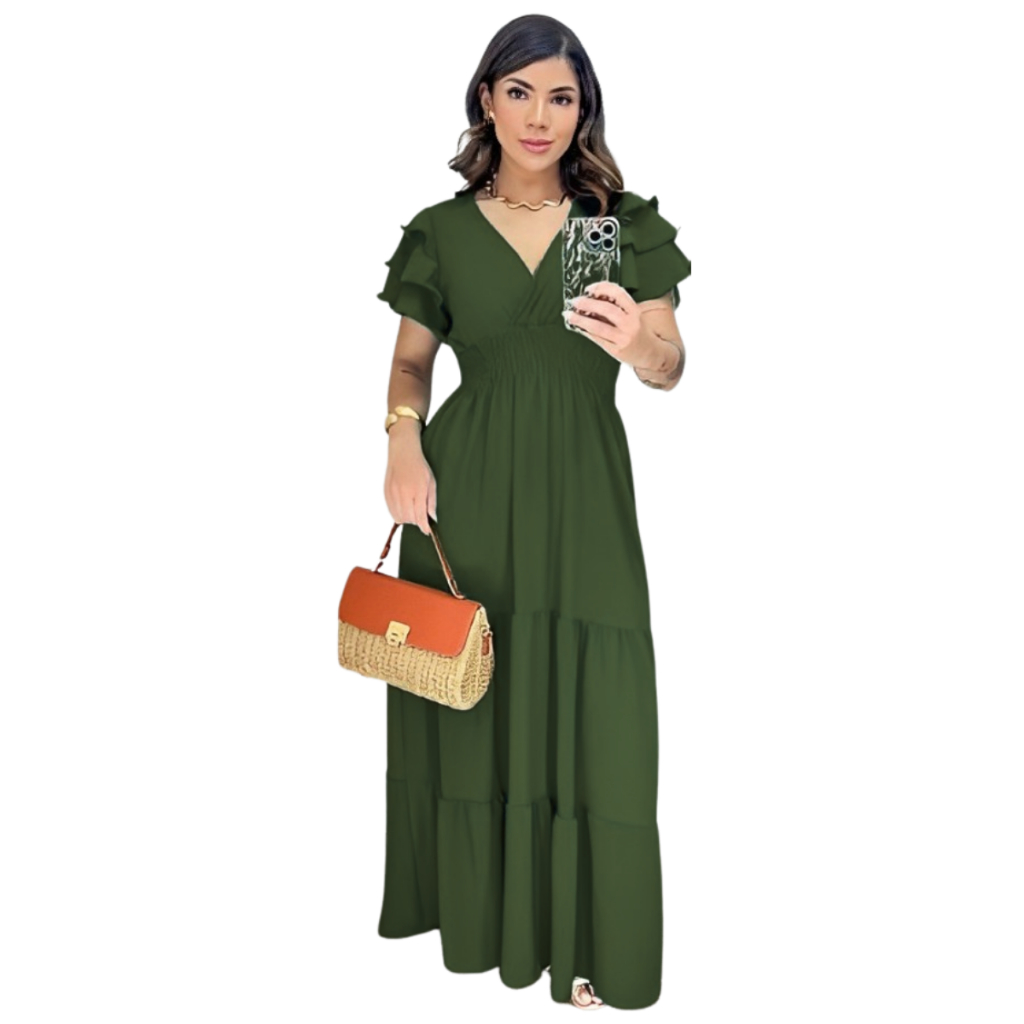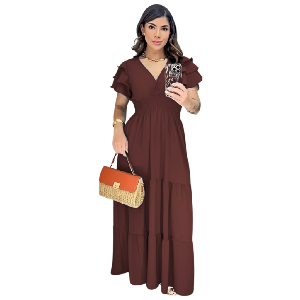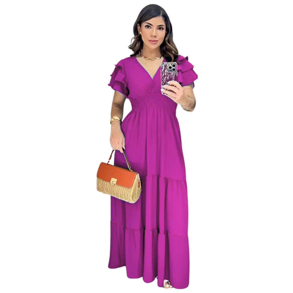 Vestido Feminino Longo Manga Curta Saia 3 Marias Duna Casameto Evangelico Formatura Dia das Mães