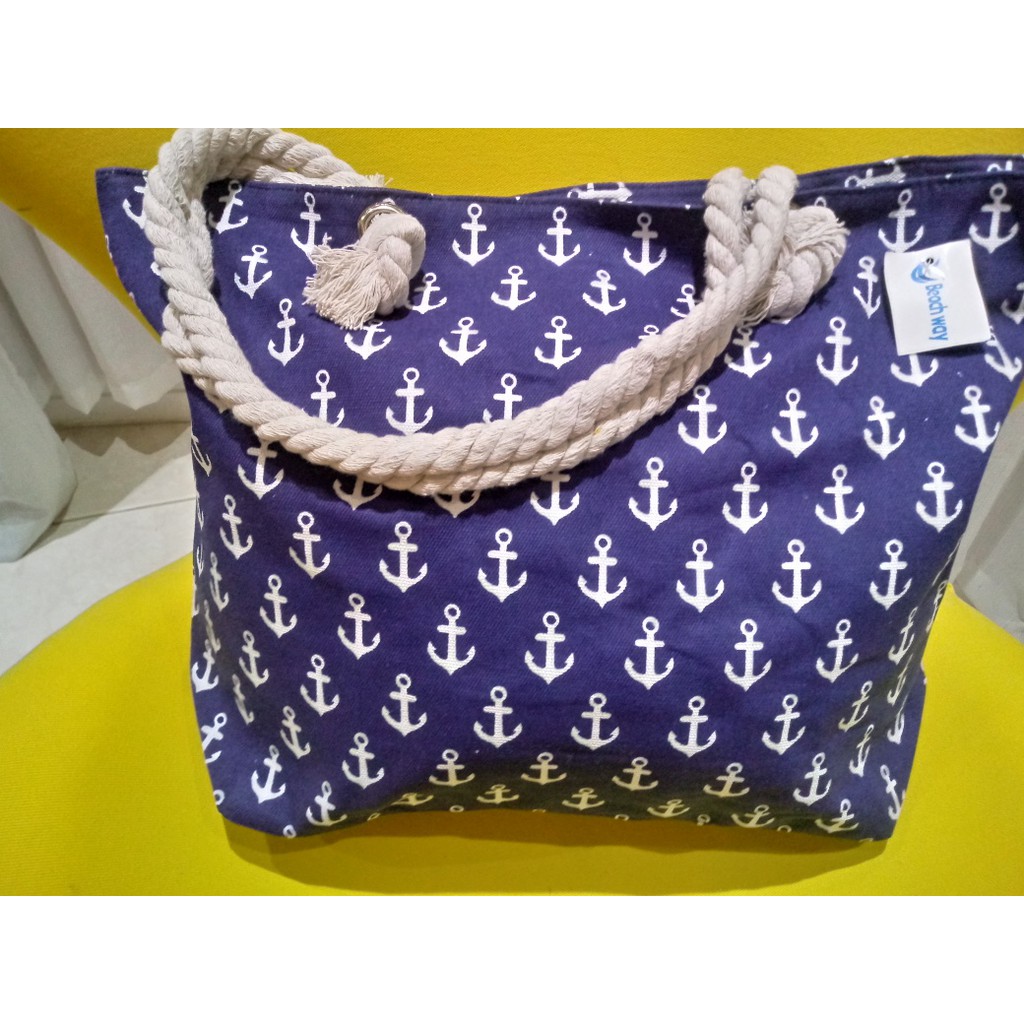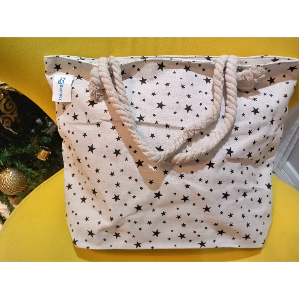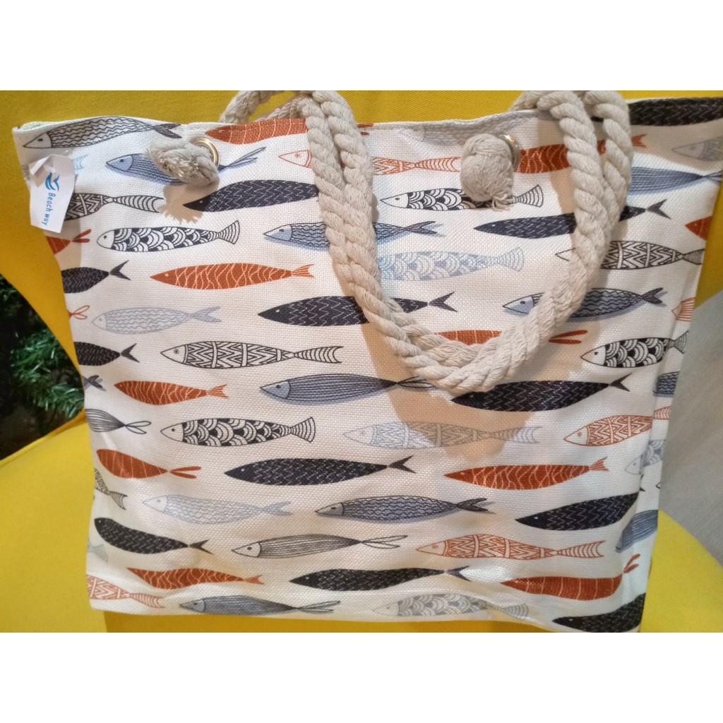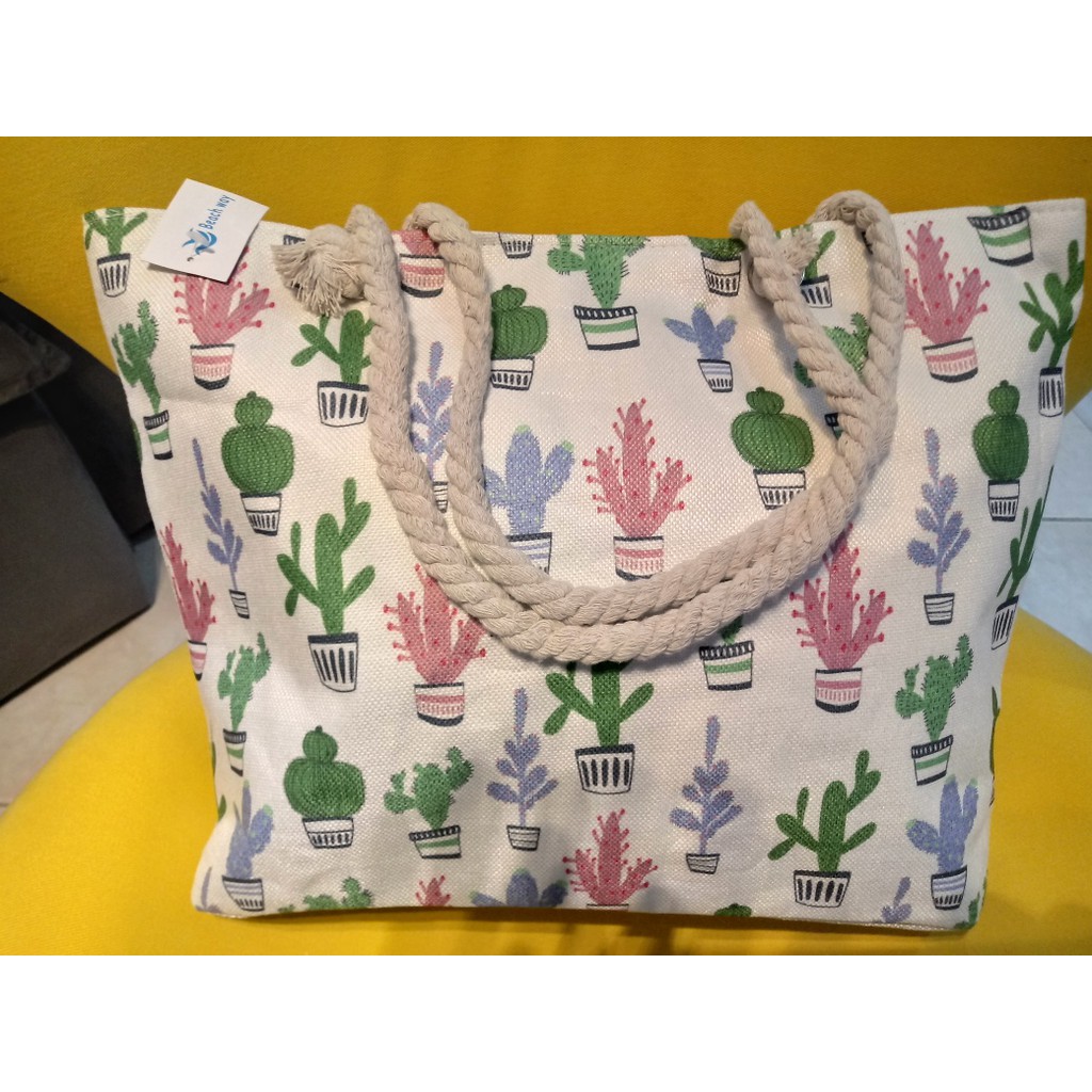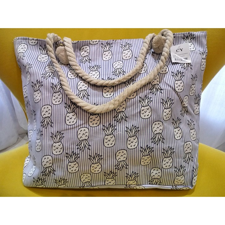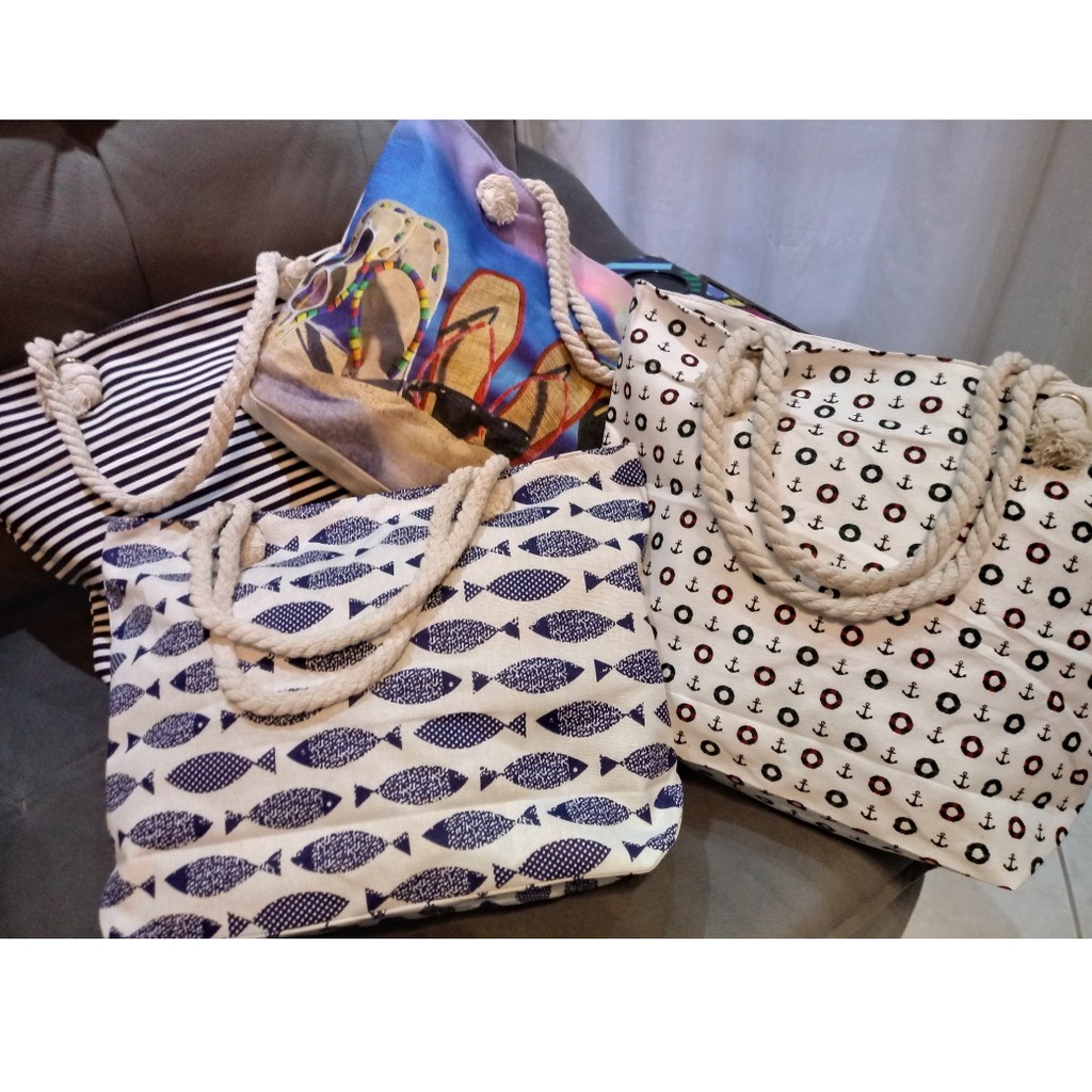 Bolsa de Praia em Lona com Forro e Fecho de Zíper dobrável Para Compras Alça de Cordas