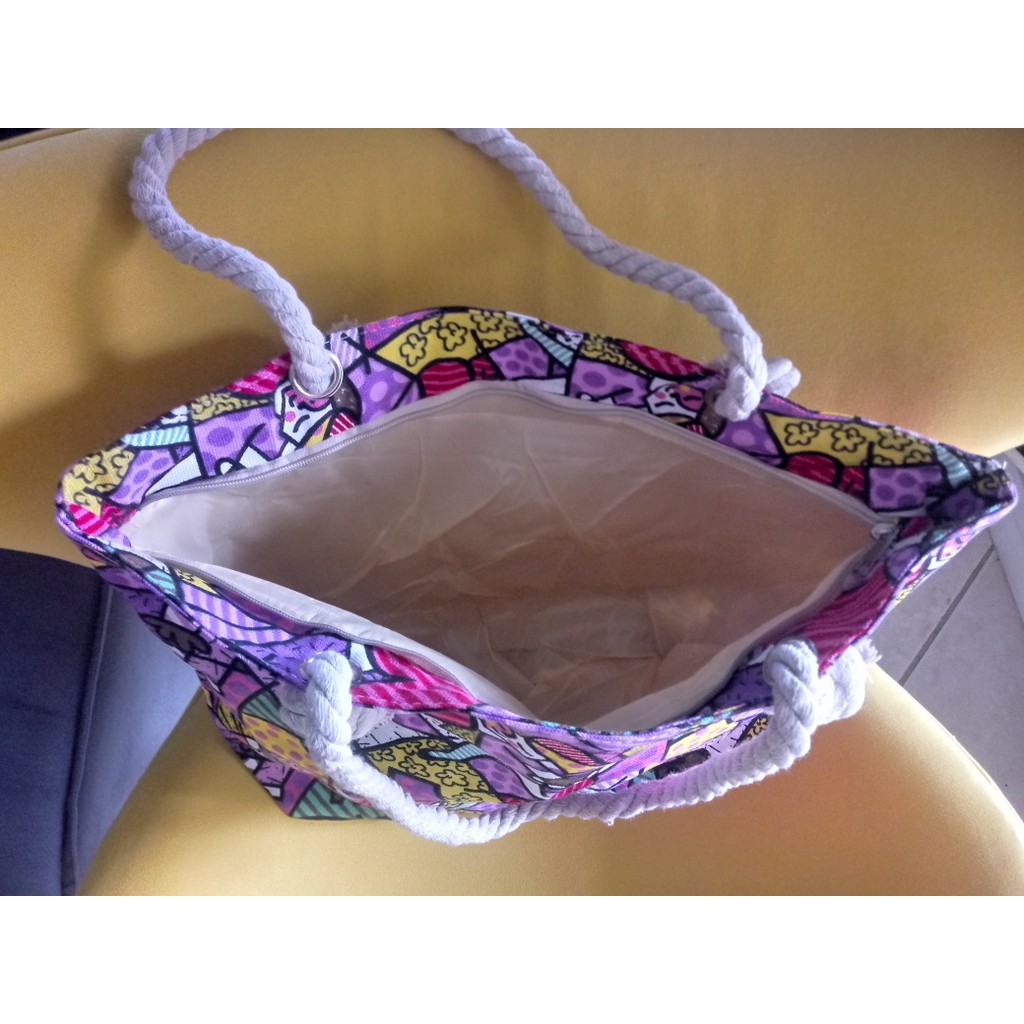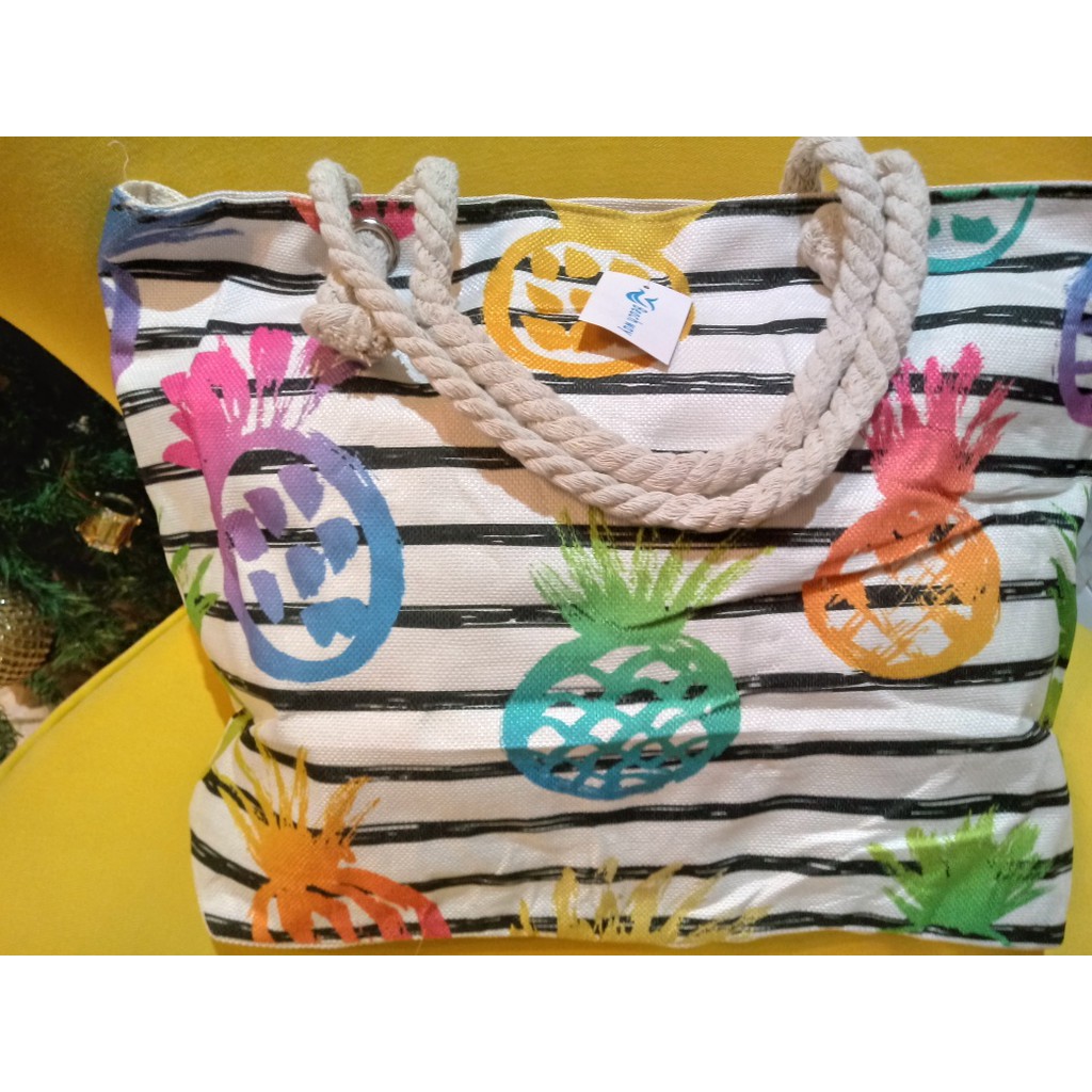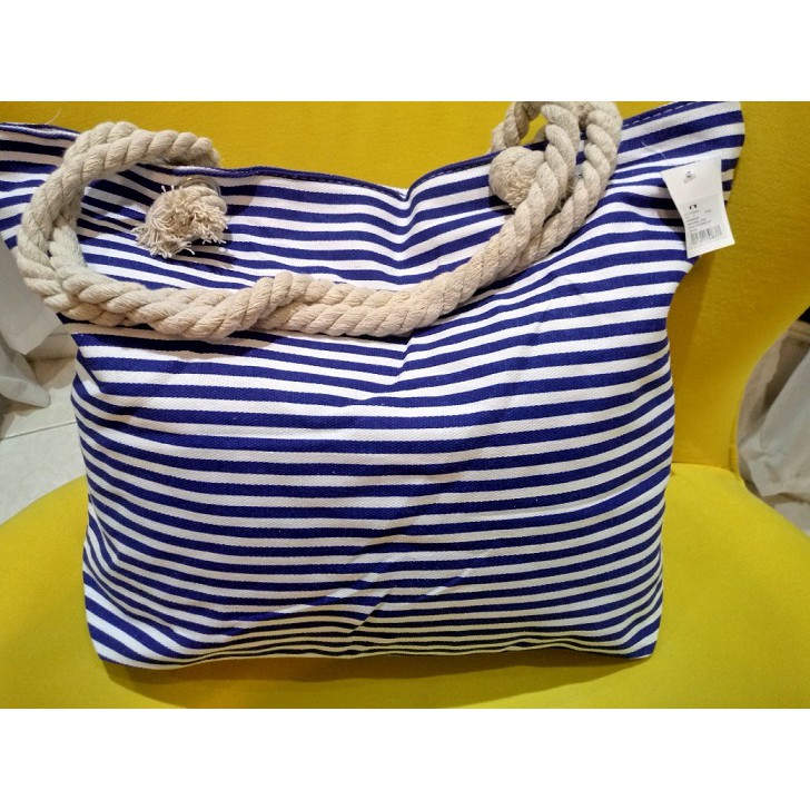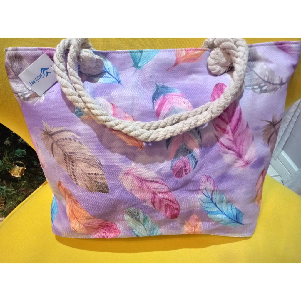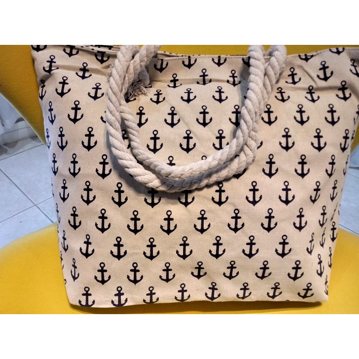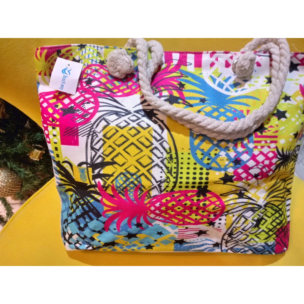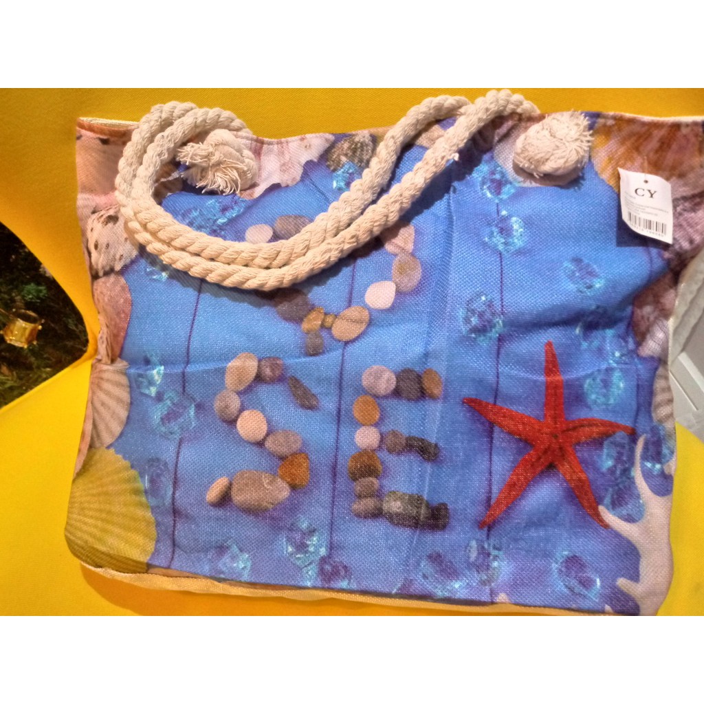 Bolsa de Praia em Lona com Forro e Fecho de Zíper dobrável Para Compras Alça de Cordas