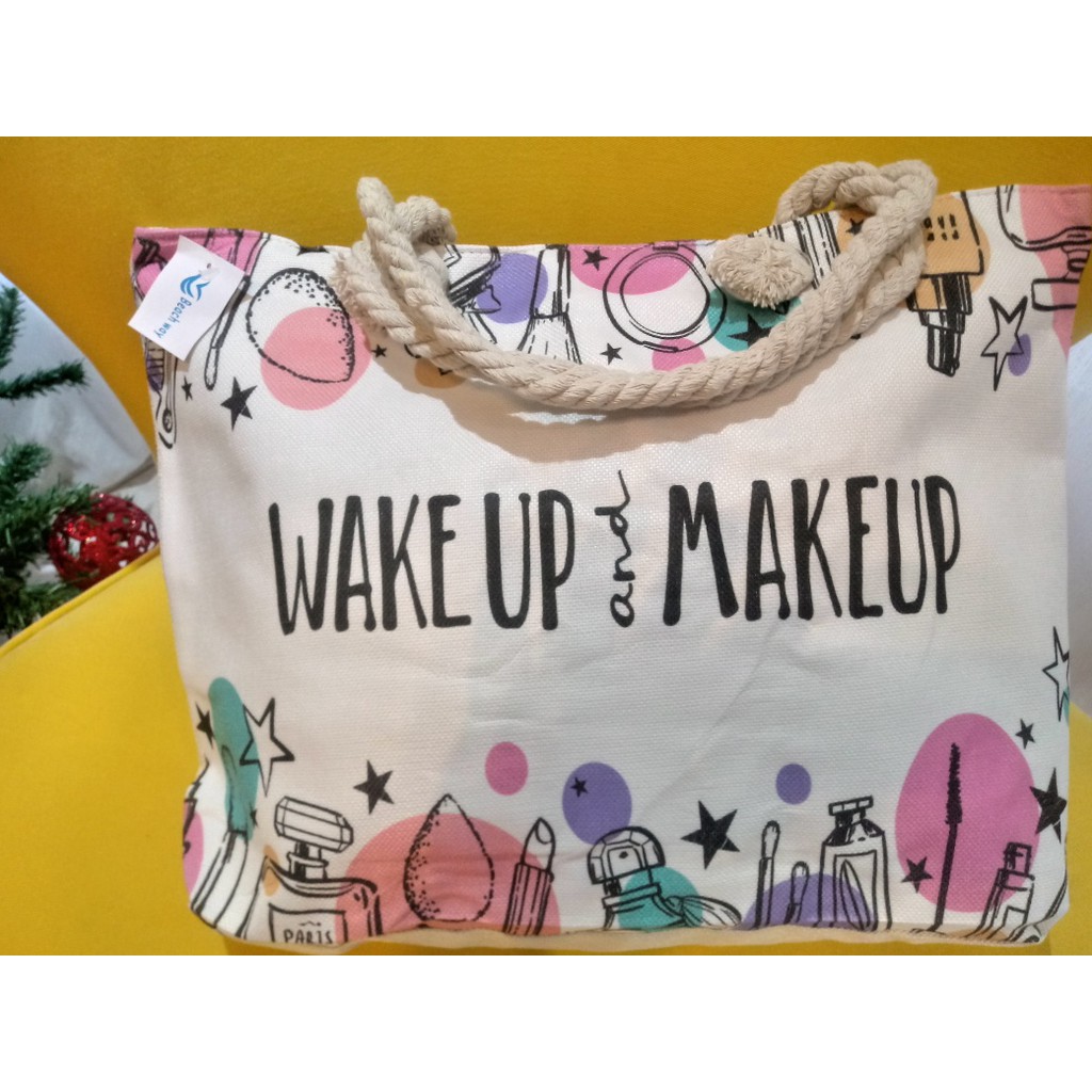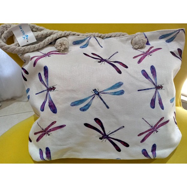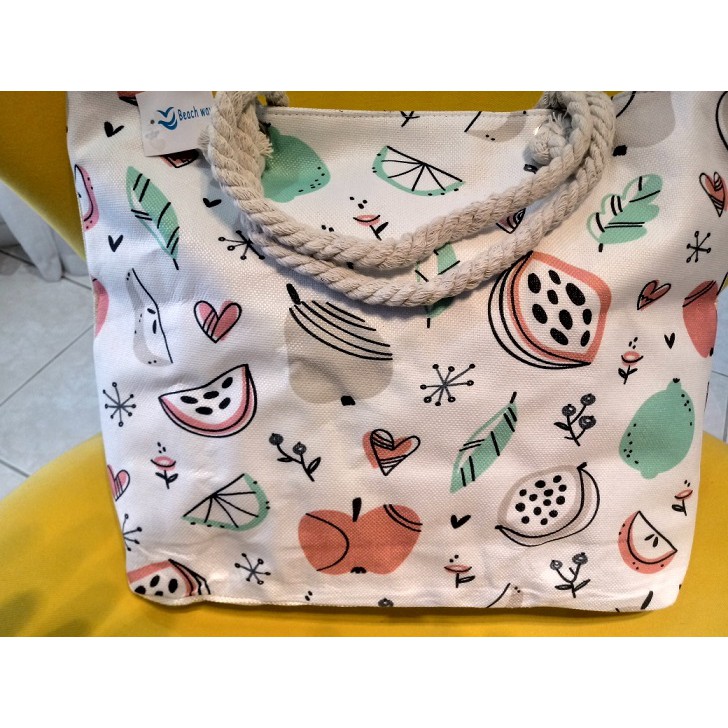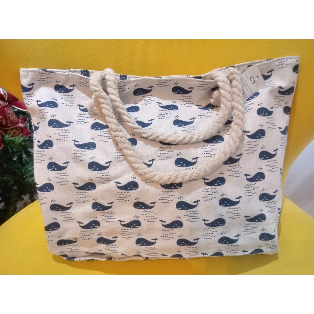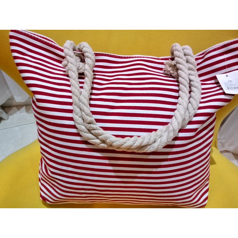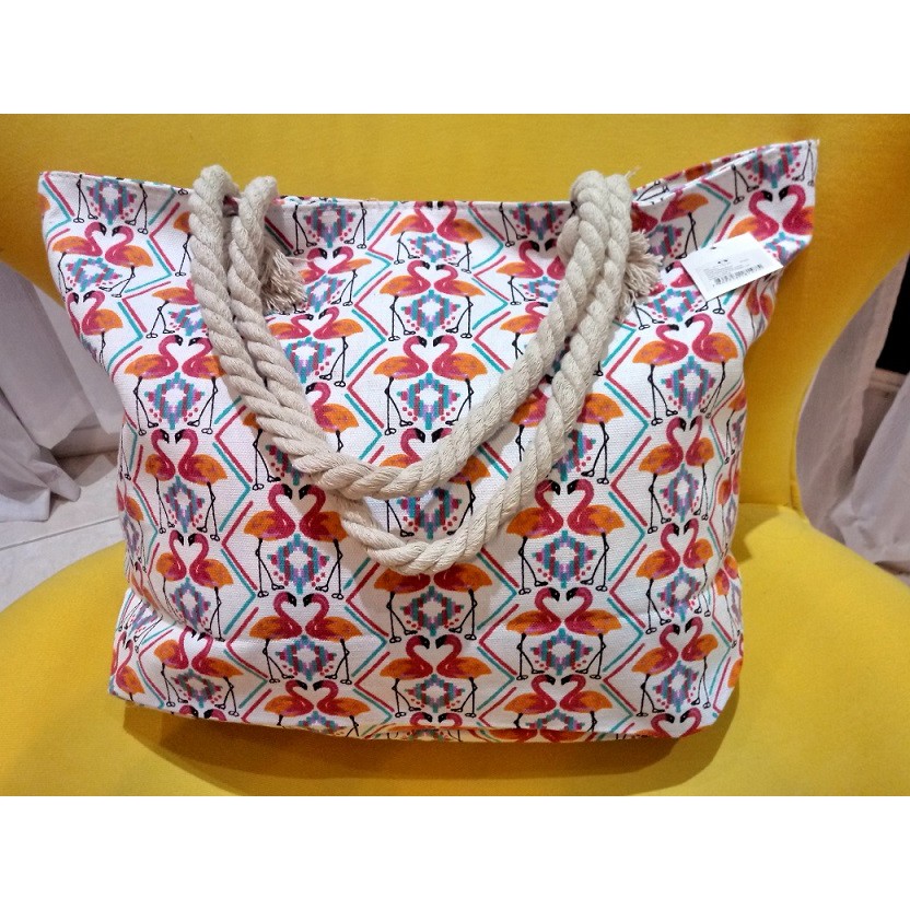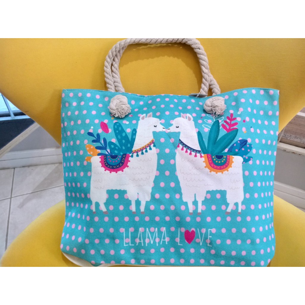 Bolsa de Praia em Lona com Forro e Fecho de Zíper dobrável Para Compras Alça de Cordas