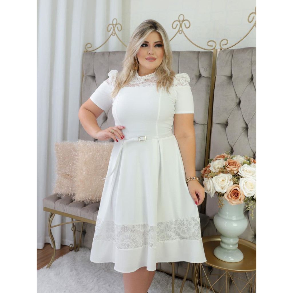 Vestido Feminino Midi com Cinto de Renda Elegante Convidada de Festa