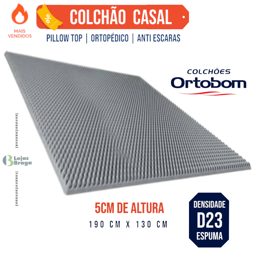Colchão Casca de Ovo Casal Ortobom Pillow Top Espuma Caixa de Ovo Anti escaras Casal 190x130x4cm d20