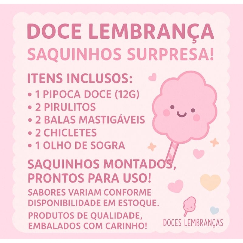 Kit com 10/15/20/30 saquinhos doces lembrancinha Festa/aniversário/mêsversário/só um bolinho Kit econômico