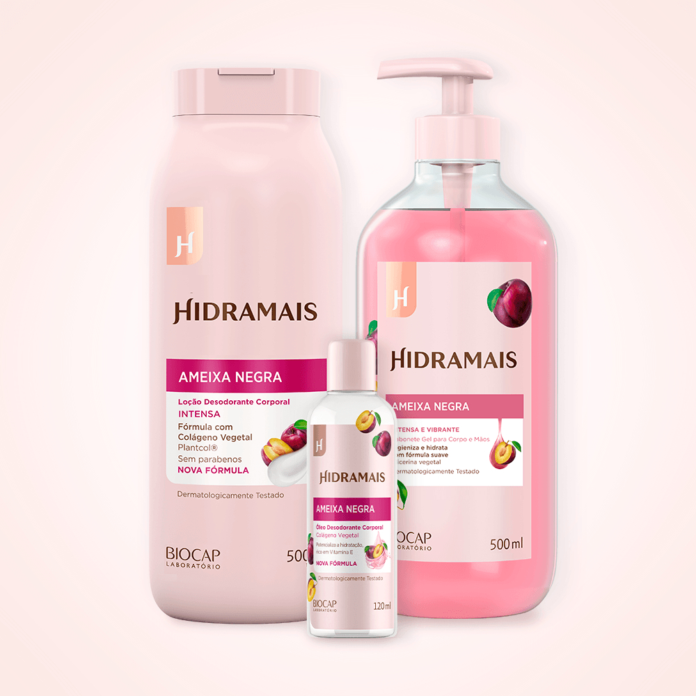 Kit Ameixa Negra - Sabonete Liquido 500ml + Loção Hidratante 500ml + Óleo Corporal 120ml - Hidramais