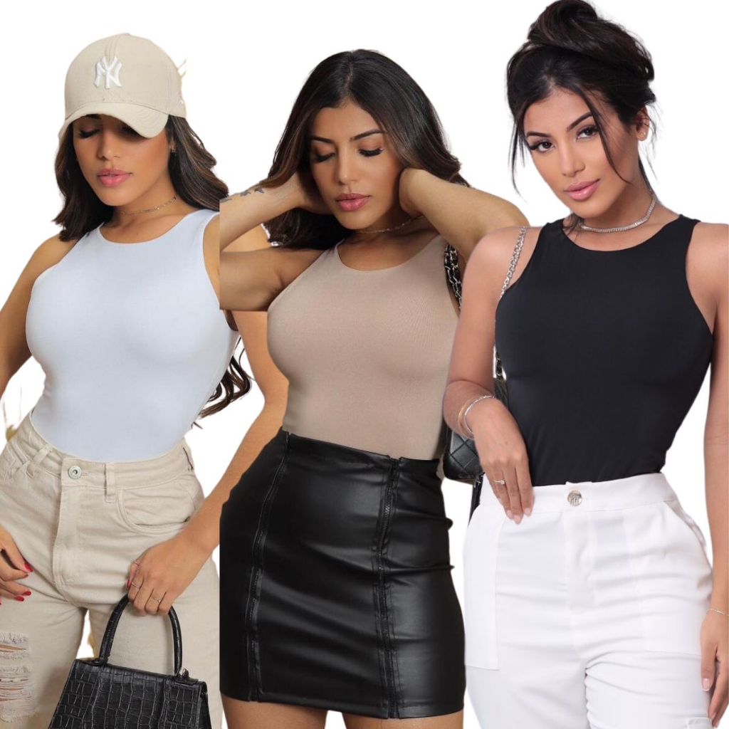 Kit 3 Body Suplex Feminino Regata Lisa Blusinha Básica Forro Duplo Bory Alça