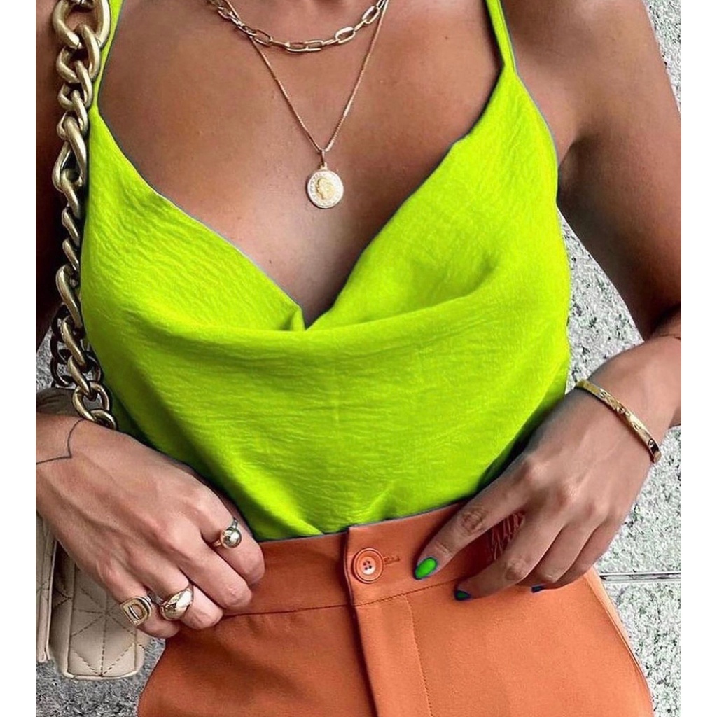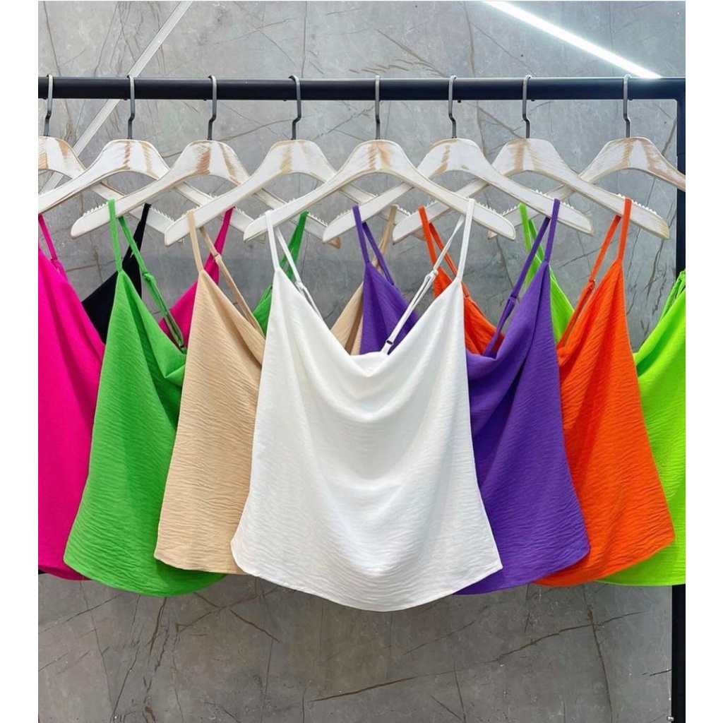 Blusa Barbie regata alcinha gola boba duna v drapeada lisa camisa Camiseta feminina qualidade Alça fina