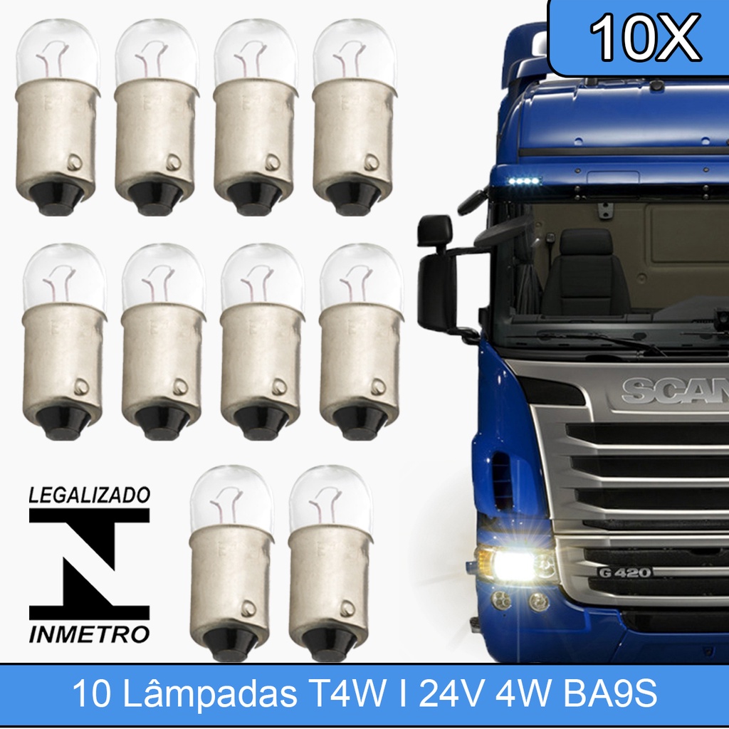 Kit com 10 Lâmpadas Miniatura (TR 69) T4W I 24V 4W BA9S Sinalização Caminhão