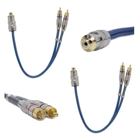 Kit Cabo RCA Blindado 5 Metros + 1 Cabo RCA 1 Metro + 2 Cabos Y 1 Fêmea 2 Macho