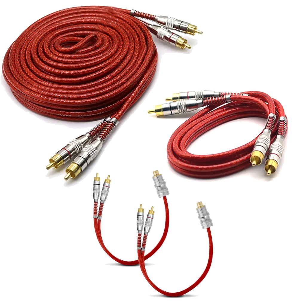 Kit 1 Cabo RCA 5 Metros Blindado + Cabo RCA 1 Metro + 2 Cabos Y 1F 2M 1 Fêmea 2 Machos