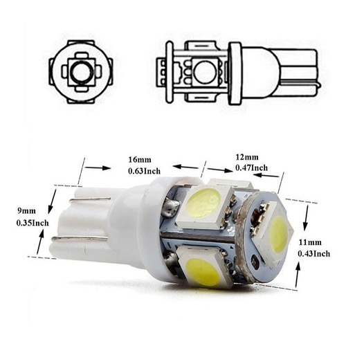 Par De Lâmpadas de Led Automotivas Caminhão T10 Pingo Pingao 24v Volts 5 Leds Luz Branca