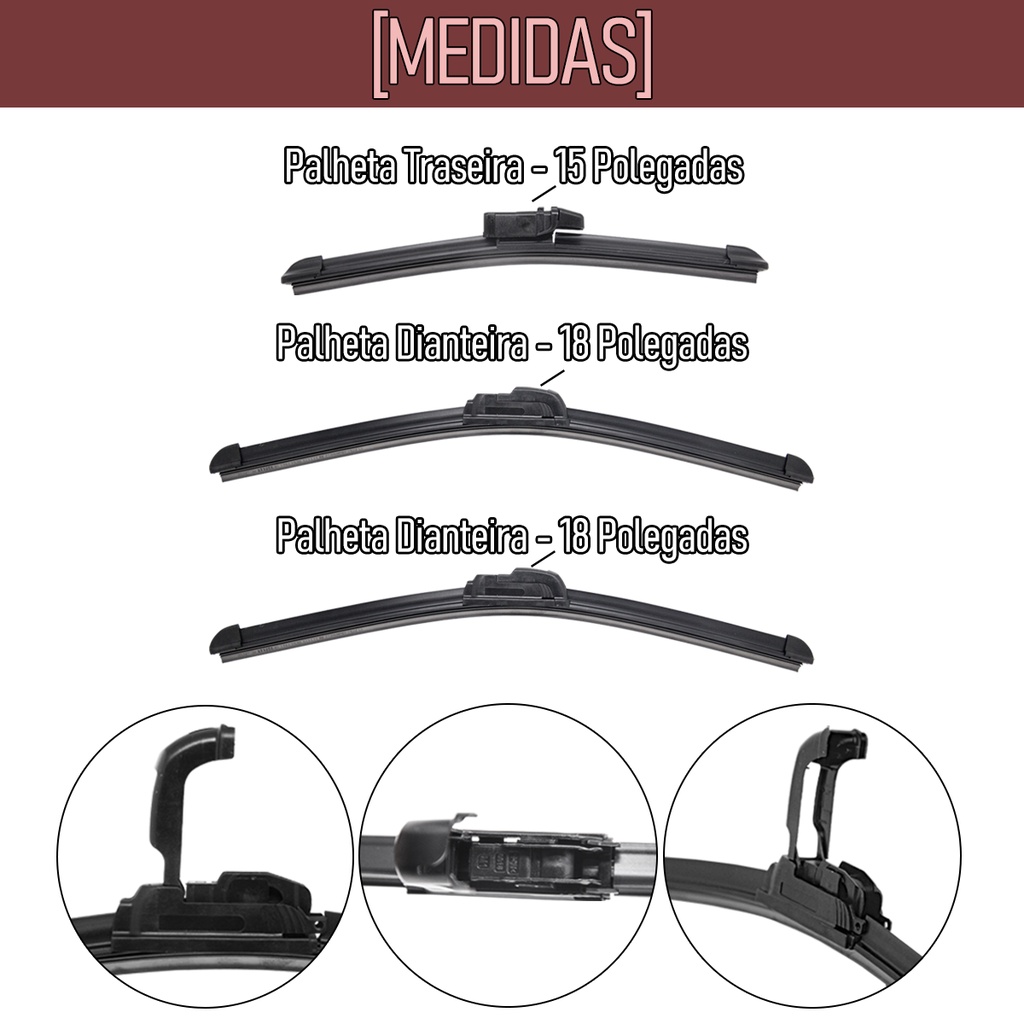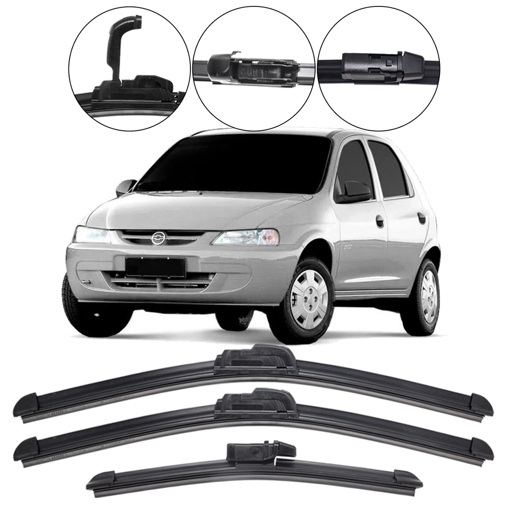 Kit 3 Palhetas Limpador Parabrisa Dianteiro + Traseiro Chevrolet Celta 2002/2010