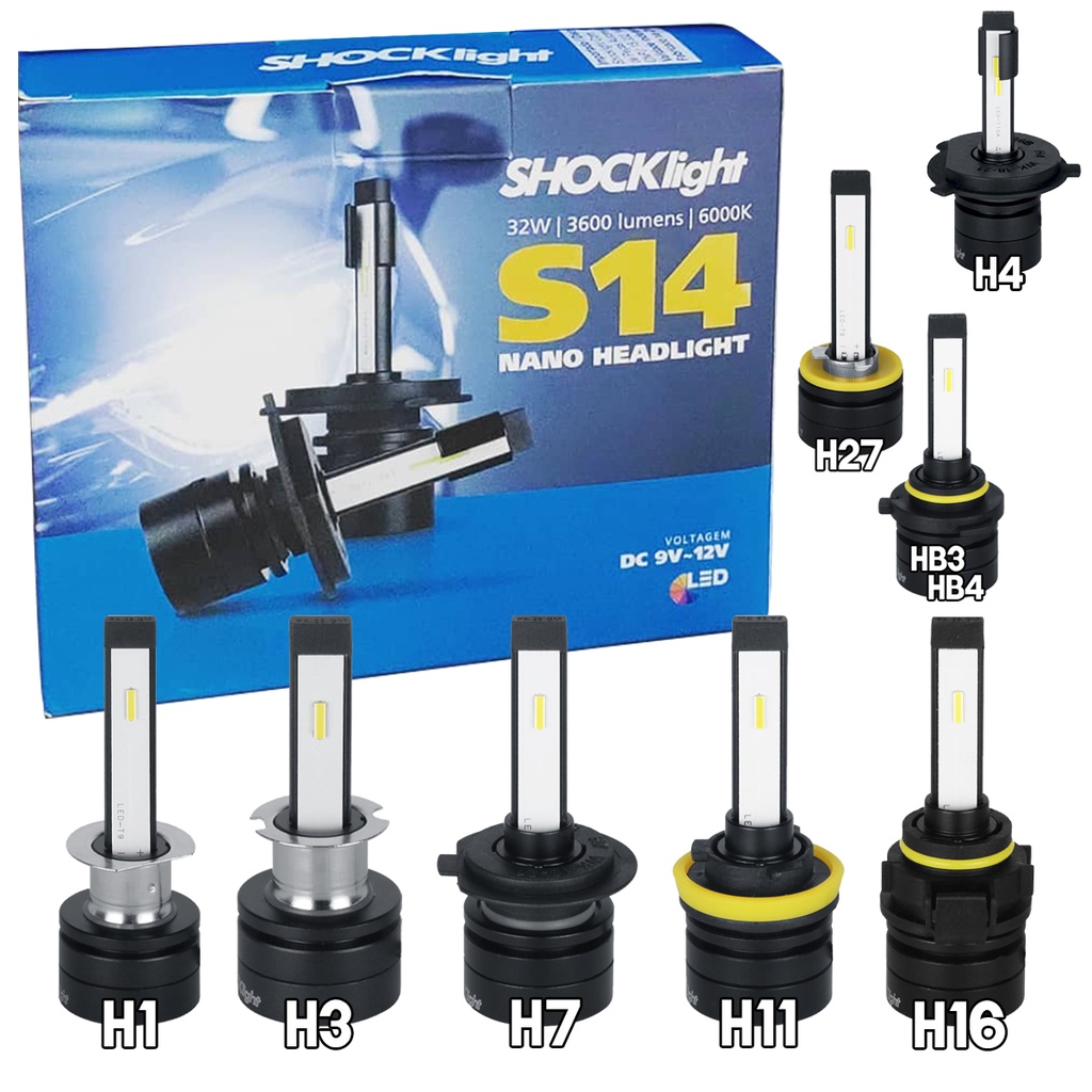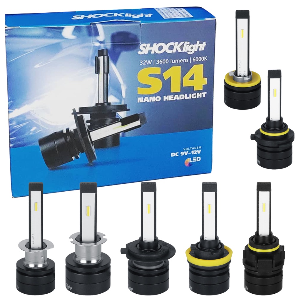 Par Kit Lâmpadas Super LED Shocklight S14 - H1 H3 H4 H7 H8 H9 H11 H16 H27 HB3/HB4