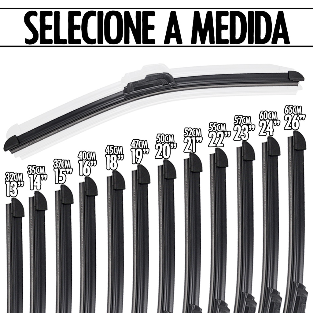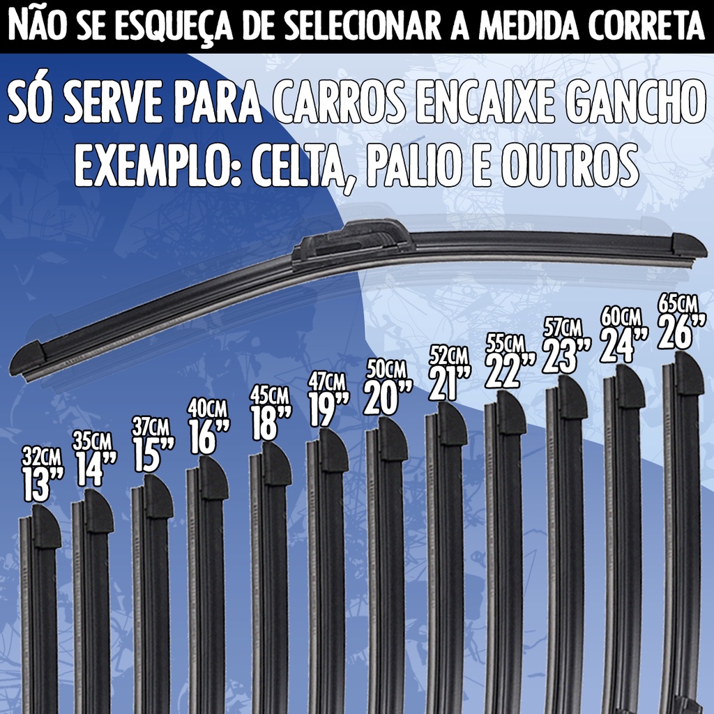 Palhetas Limpador de Parabrisa Dianteiro - Encaixe Gancho Diversos Tamanhos
