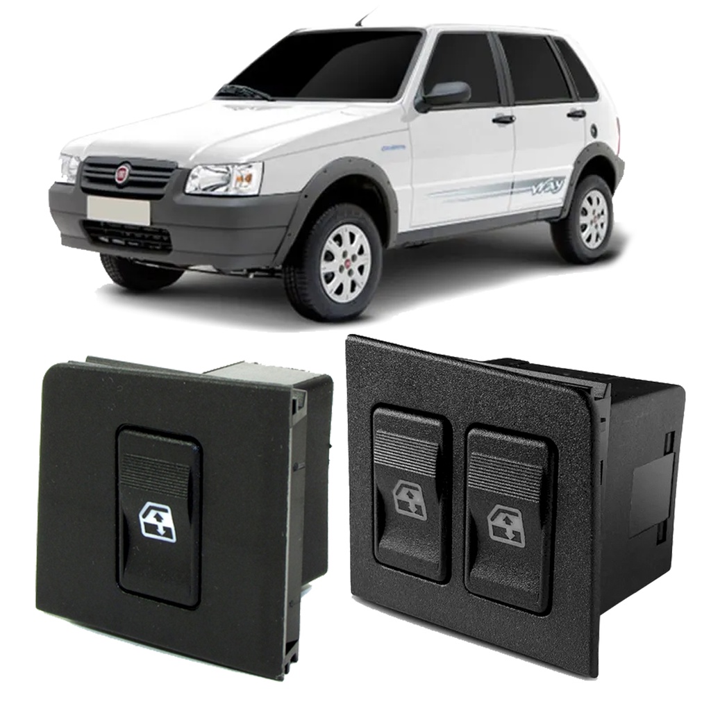 Botão Interruptor Vidro Elétrico Simples / Duplo - Fiat Uno, Fiorino Prêmio e Elba / LED Verde