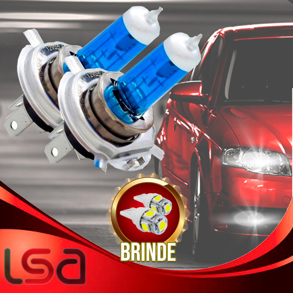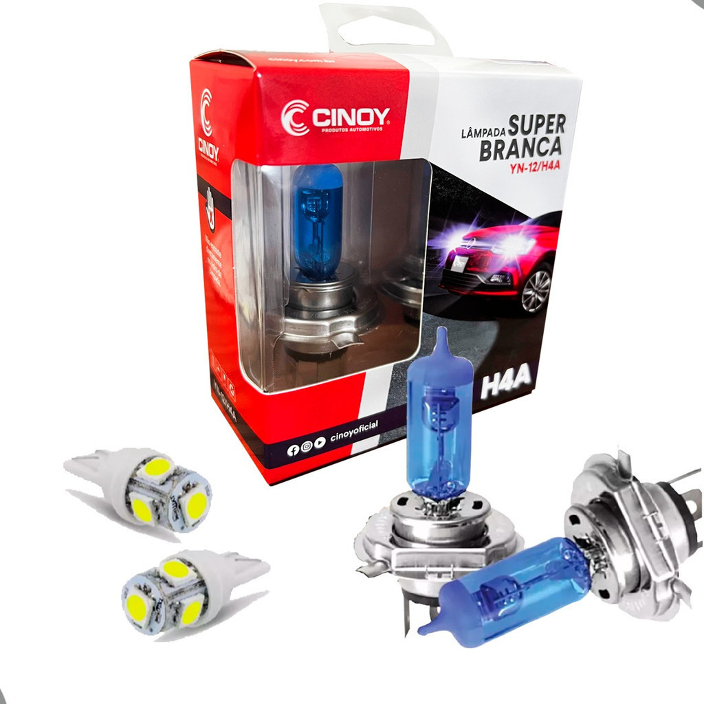 Par Lâmpadas Super Branca H4 8500k + Par Pingo T10 Universal Diversos Carros