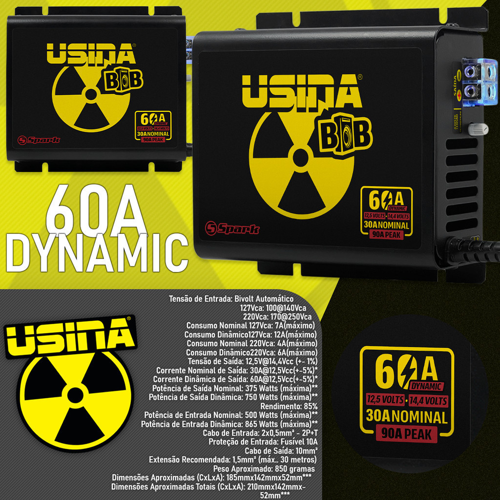 Fonte Usina Carregador Automotivo Bob 60A 750w Dynamic Nova Lançamento Compacta Bivolt