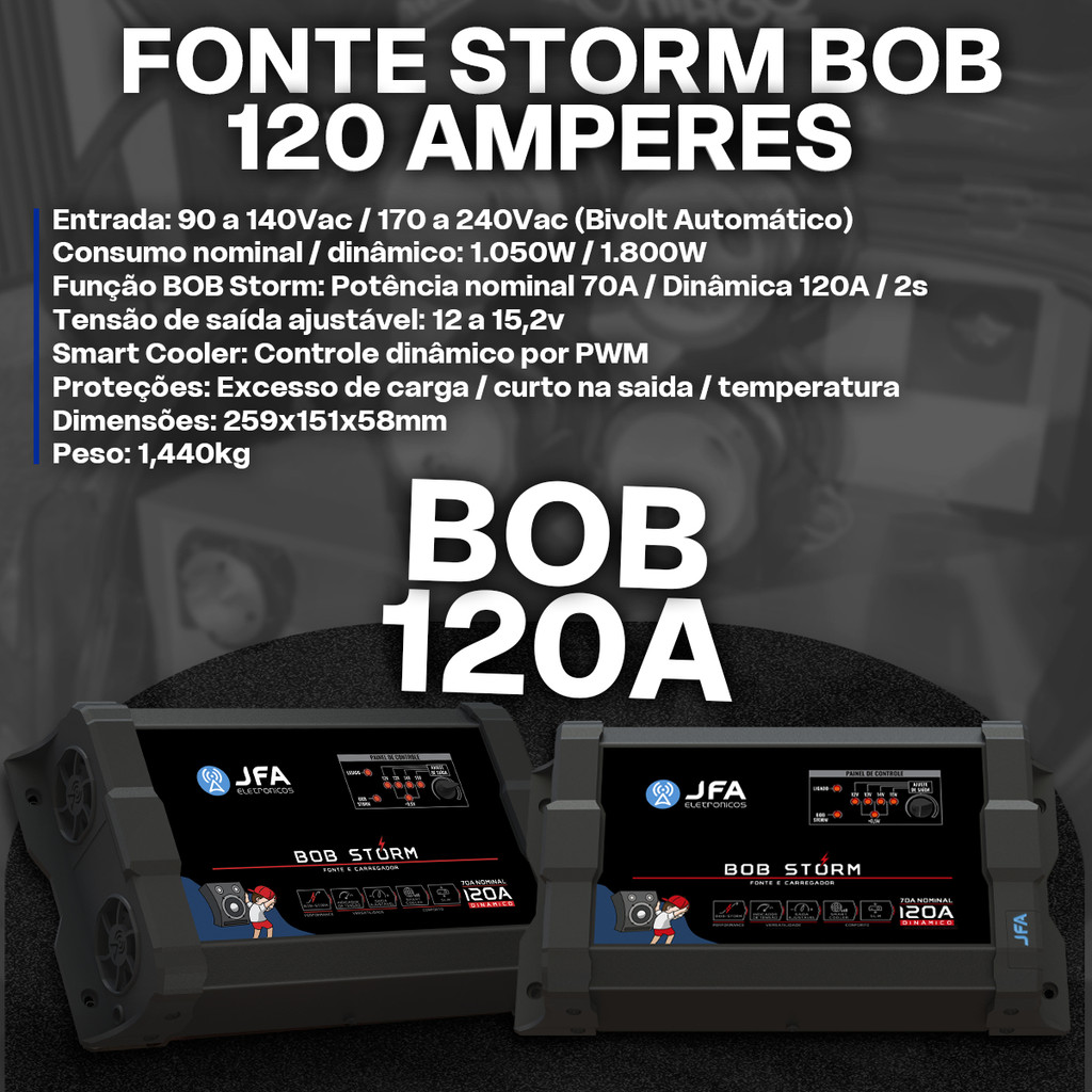 Fonte Carregador Bateria JFA Bob Storm 120 Amperes - Bivolt Automático
