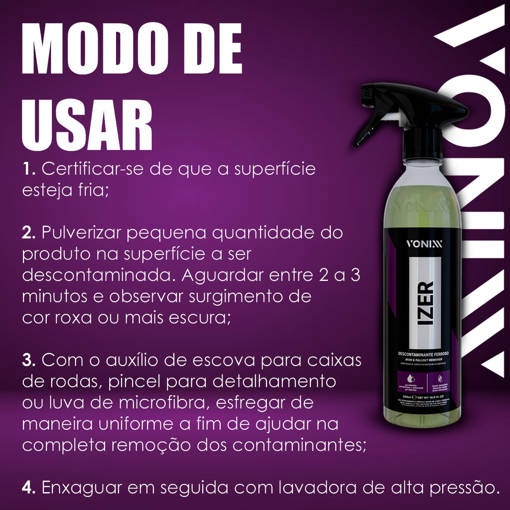 Izer 500ml Vonixx-Descontaminante Ferroso pH Neutro para Rodas, Pintura e Cromados, Remove Ferrugem