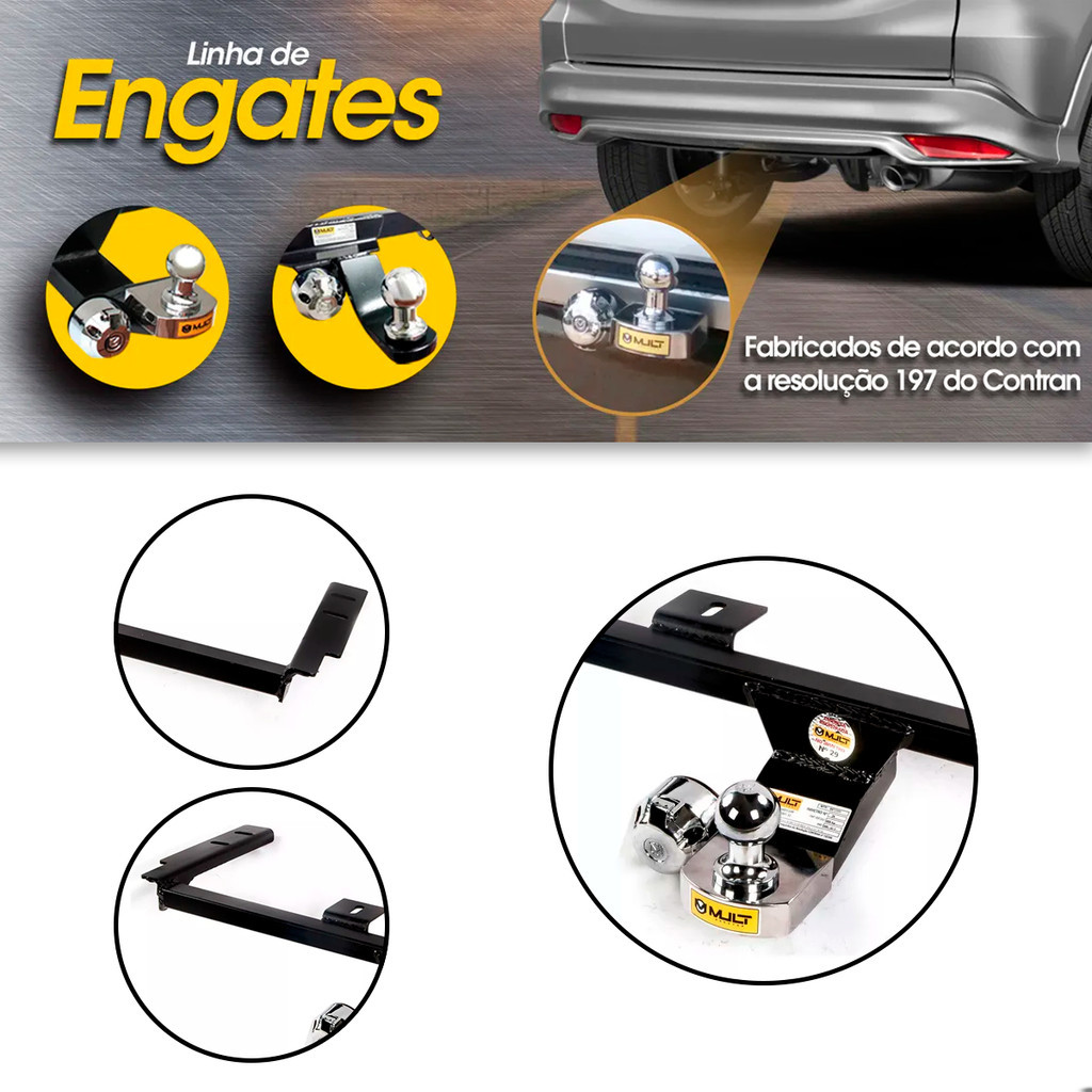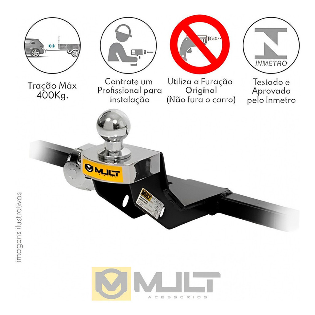 Engate Fixo Reboque Mult Fiat Fiorino Furgão 1.0 1.3 1.5 1998-2013 400Kg Aço Sem Furo na Longarina com Bola 50mm