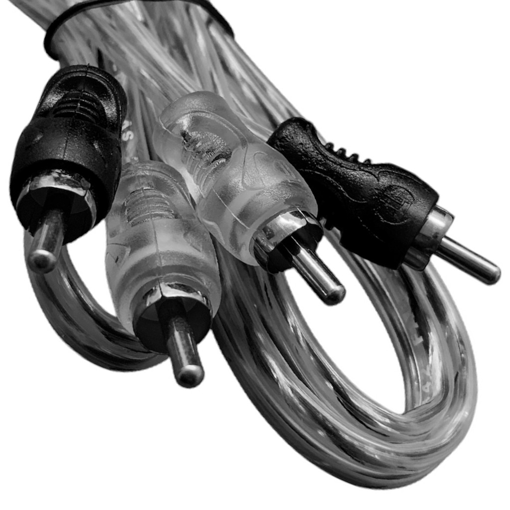 Cabo Rca Injetado Techone Svart 1 Metros 4mm Flexível Transparente Preto/Prata Som Automotivo Plug de Metal Níquel