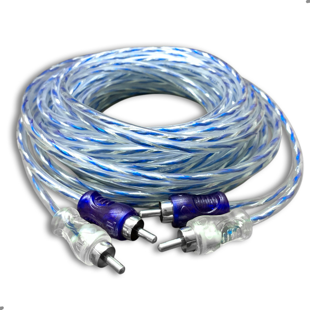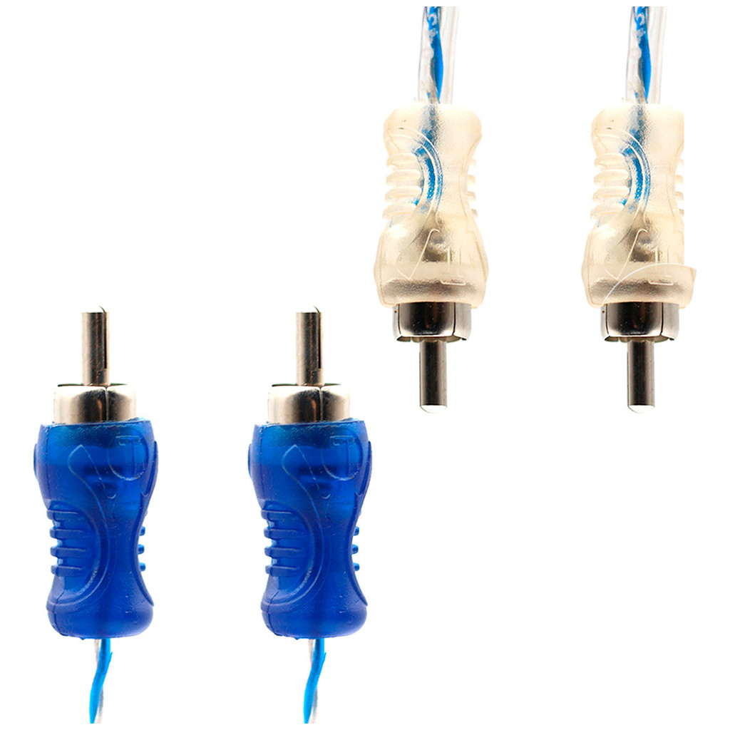 Cabo Rca Injetado Techone Svart 5 Metros 4mm Flexível Transparente Azul/Prata Som Automotivo Plug de Metal Níquel