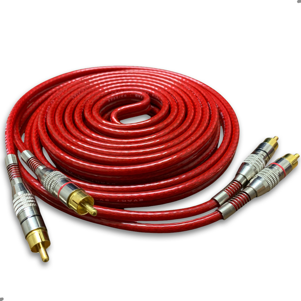 Cabo RCA Blindado 5 Metros 5mm Vermelho Dupla Blindagem Cobre Alumínio Techone Svart Som Automotivo