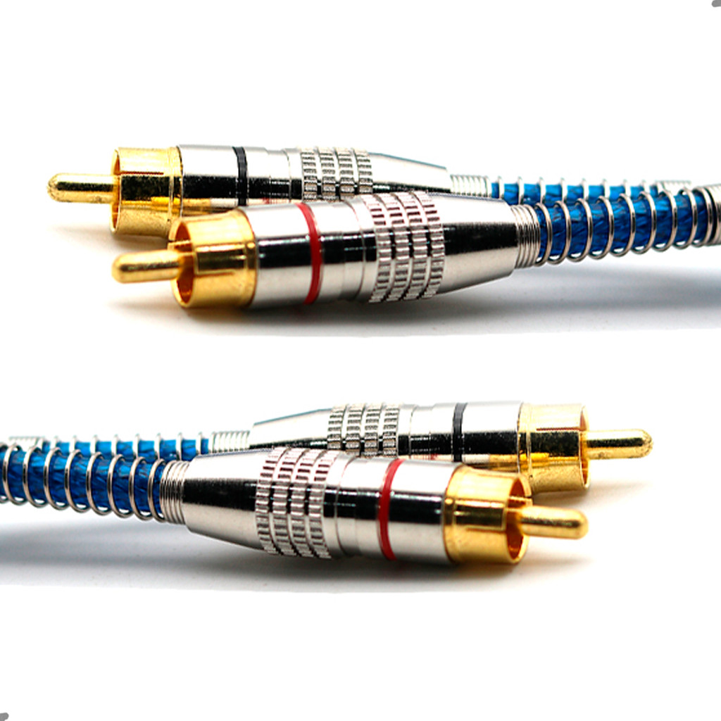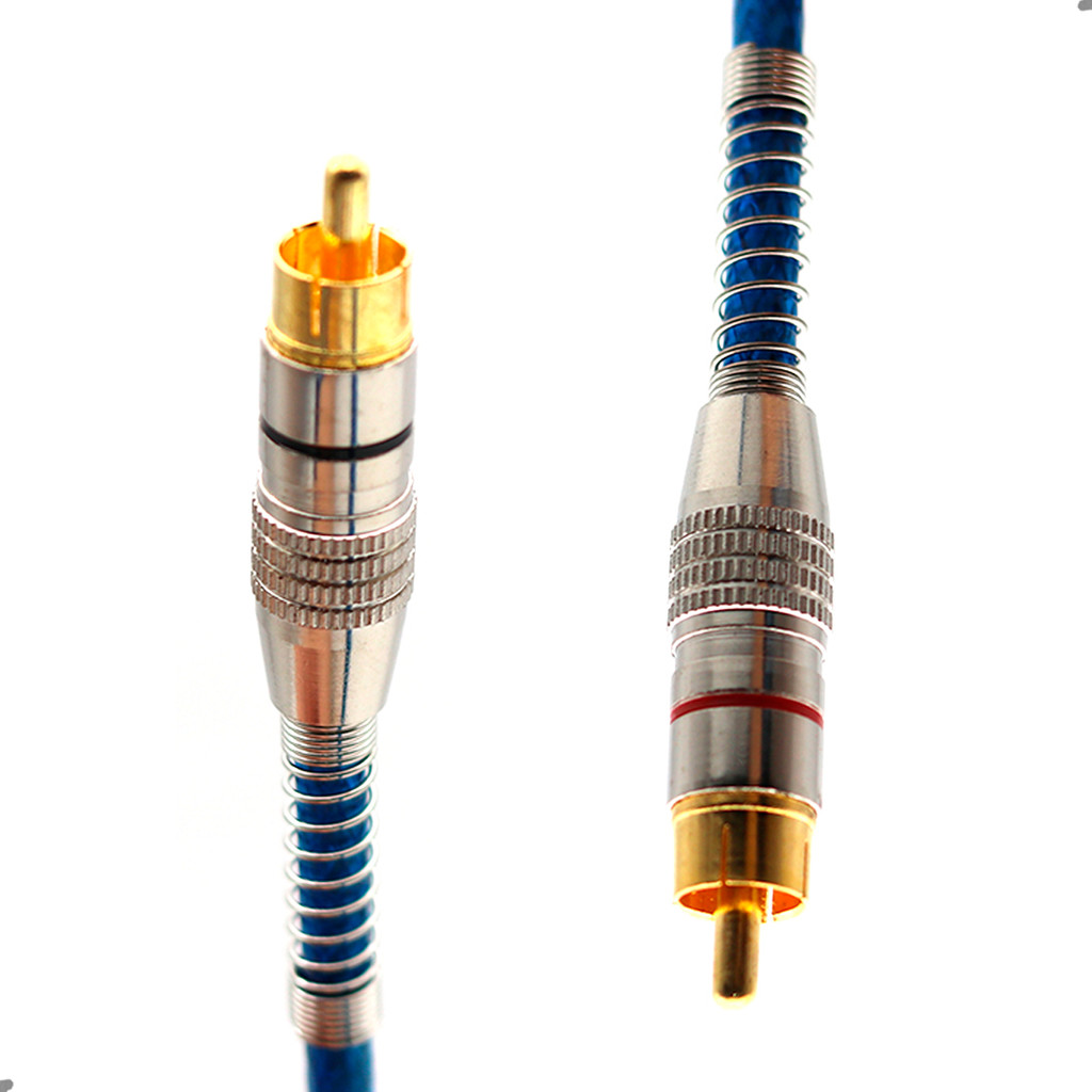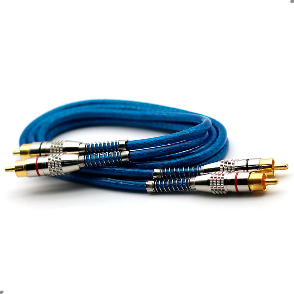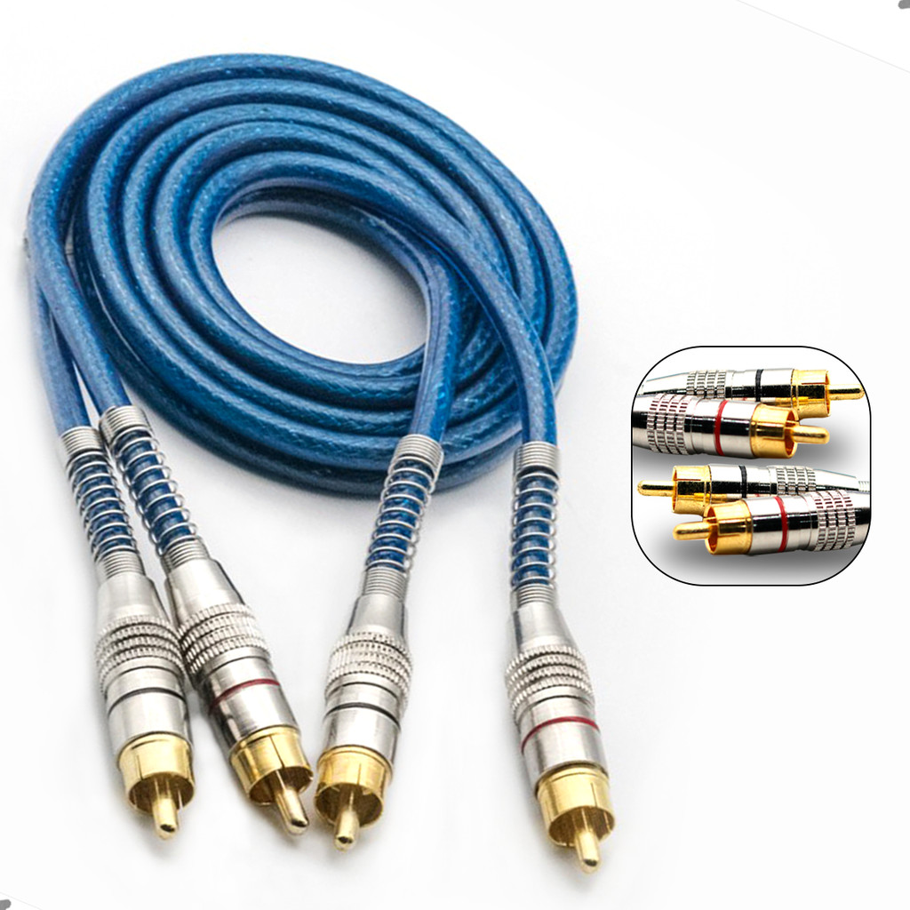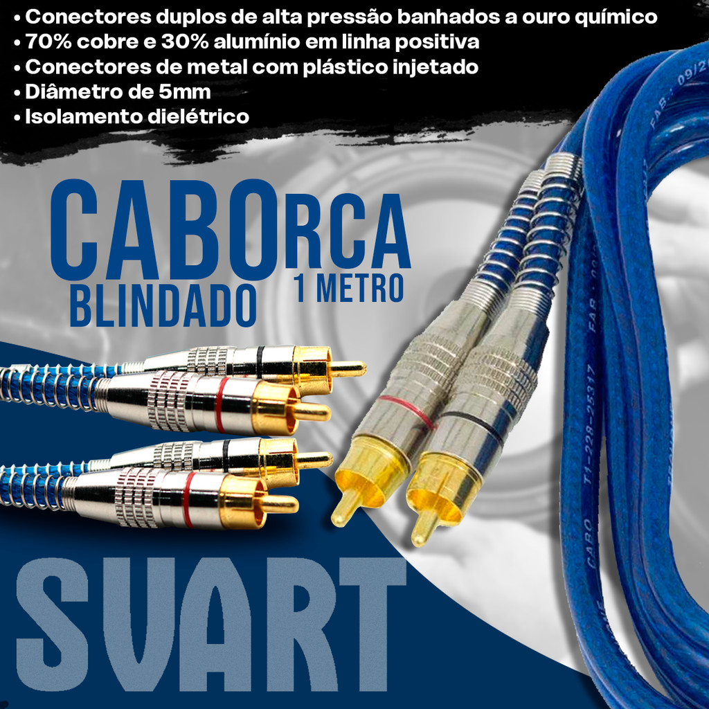 Cabo RCA Blindado 1 Metro 5mm Azul Dupla Blindagem Cobre Alumínio Techone Svart Som Automotivo