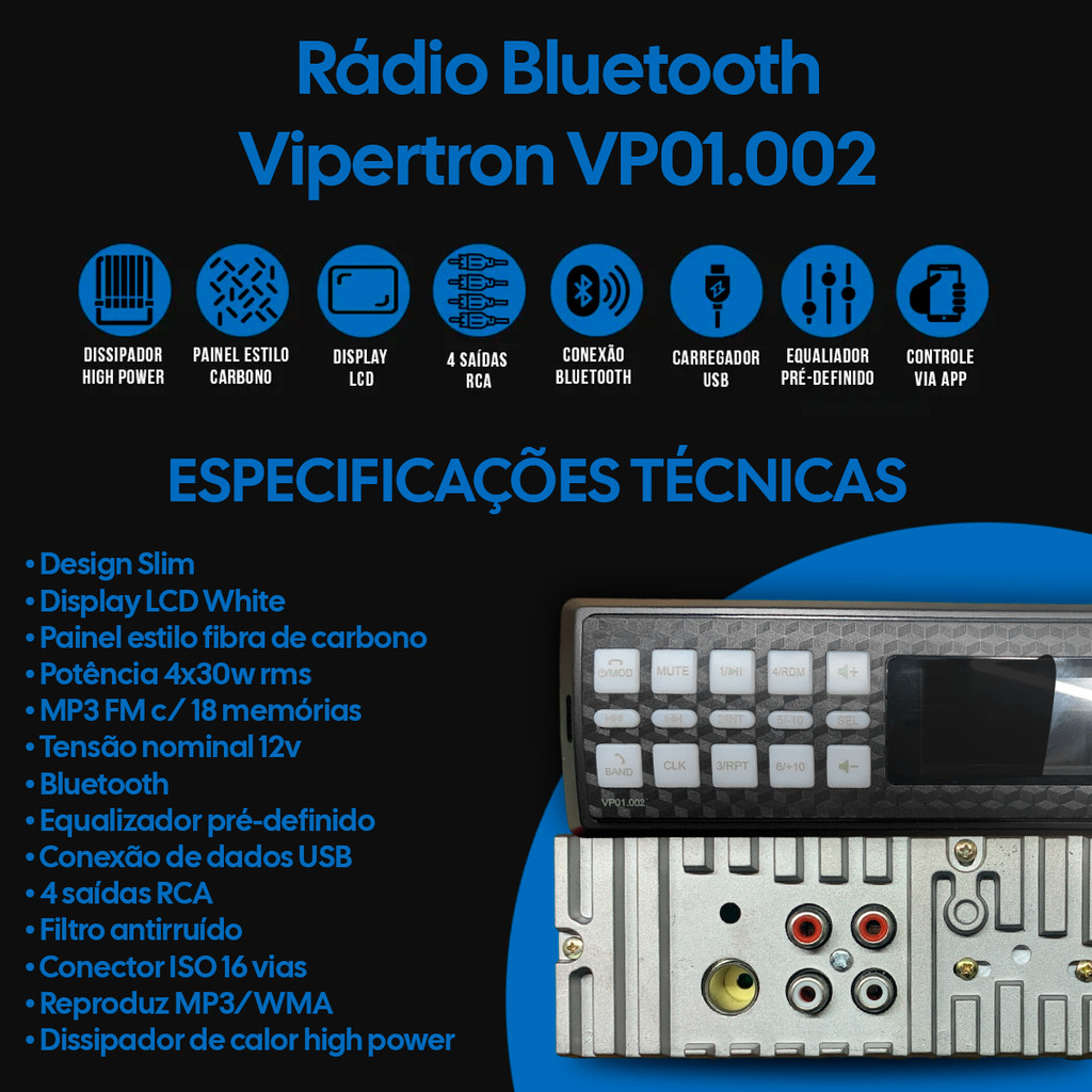 Rádio Automotivo Mp3 Fm Bluetooth Usb Lcd Vipertron 4x30w