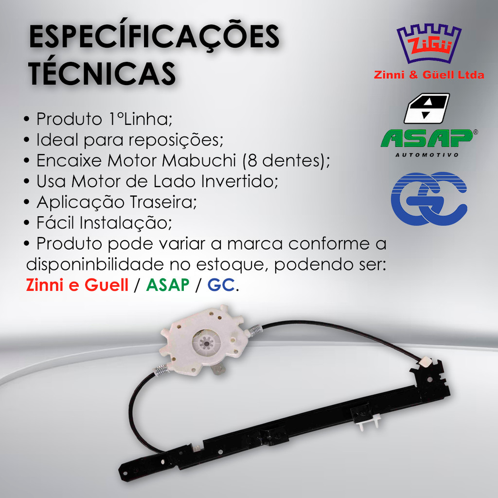 Máquina Vidro Elétrico Fiat Palio/Siena/Weekend 4P 1996-2017 Traseiro Direito Passageiro Mabuchi 8 Dentes Sem Motor