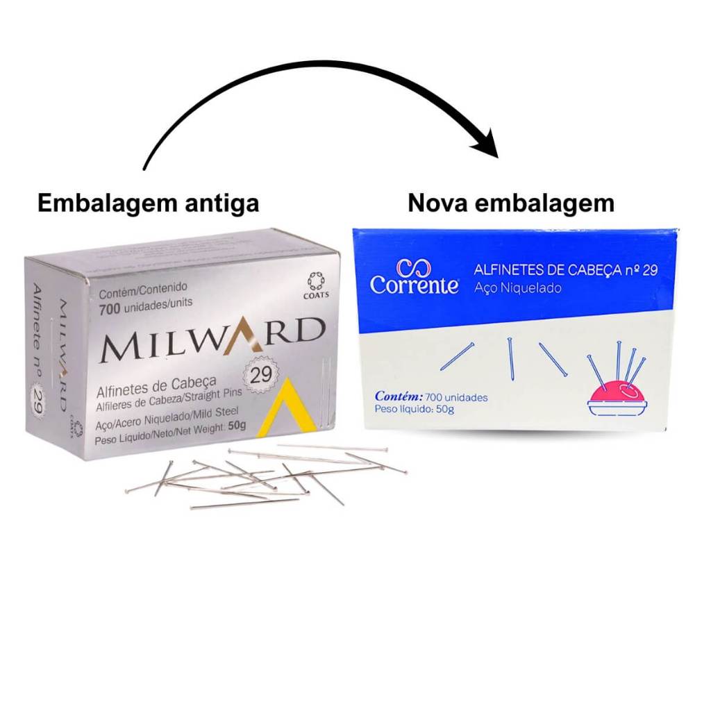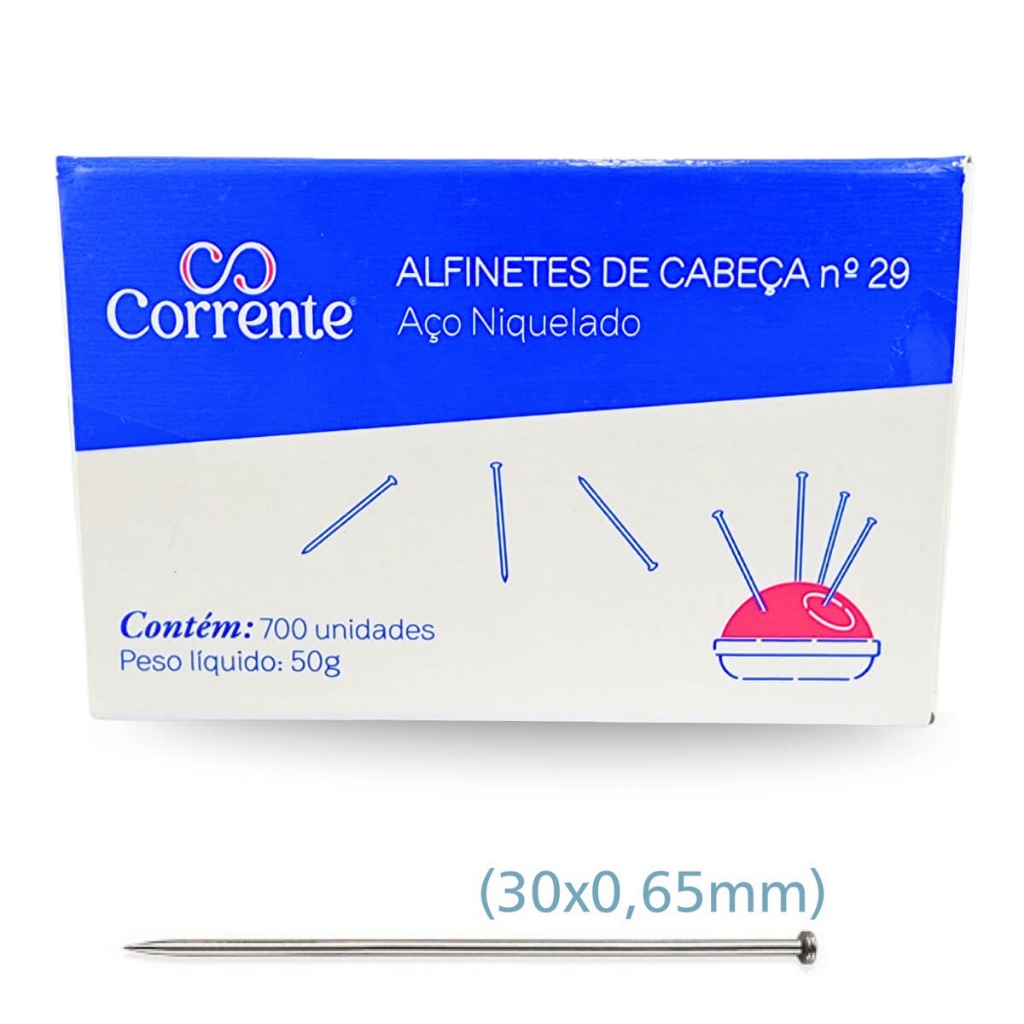 Alfinete de Cabeça N° 29 Corrente 700 Unidades - NOVA EMBALAGEM