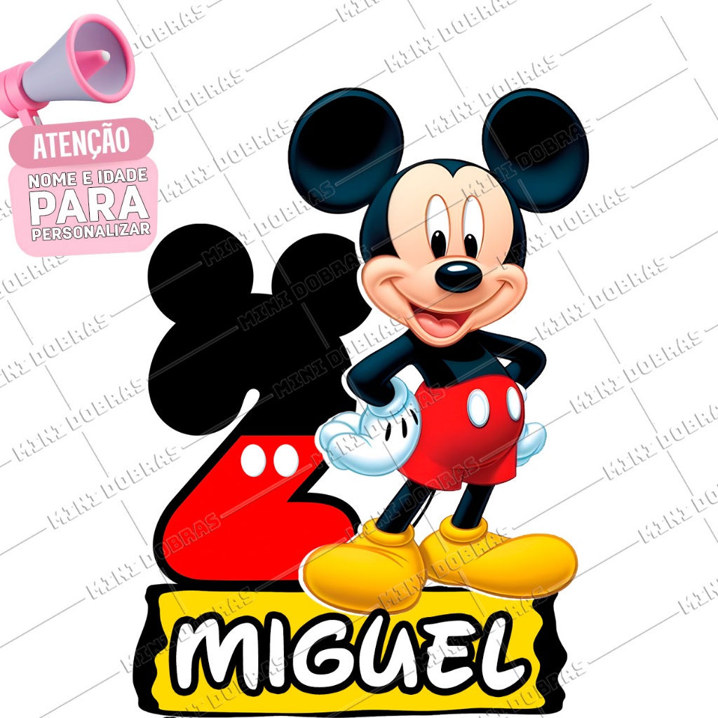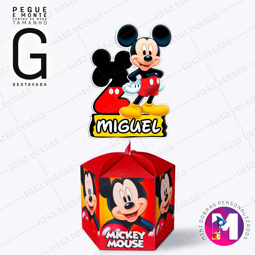 Centro de Mesa MICKEY - Caixa Sextavada - Tamanho G - Personalizado (PEGUE E MONTE)