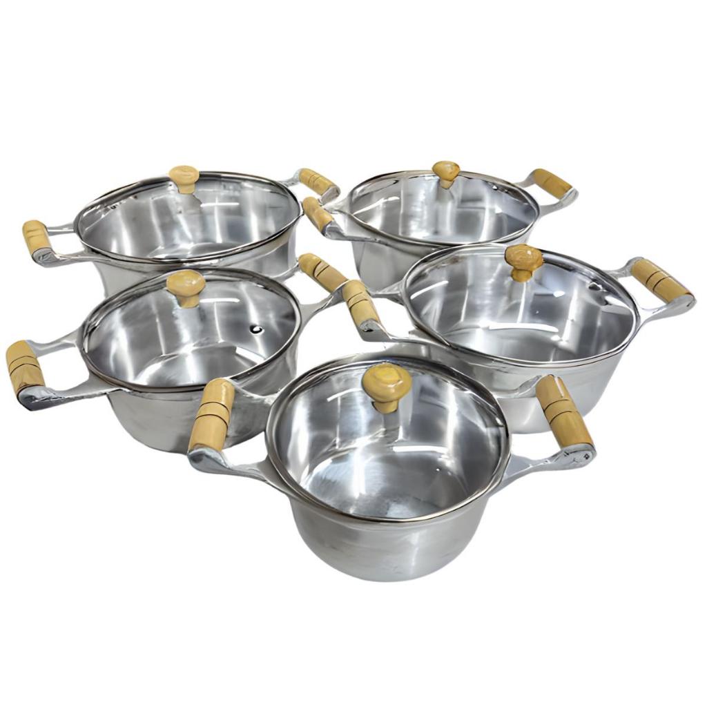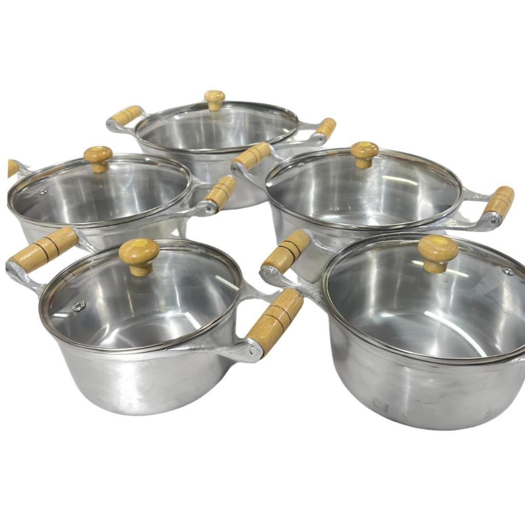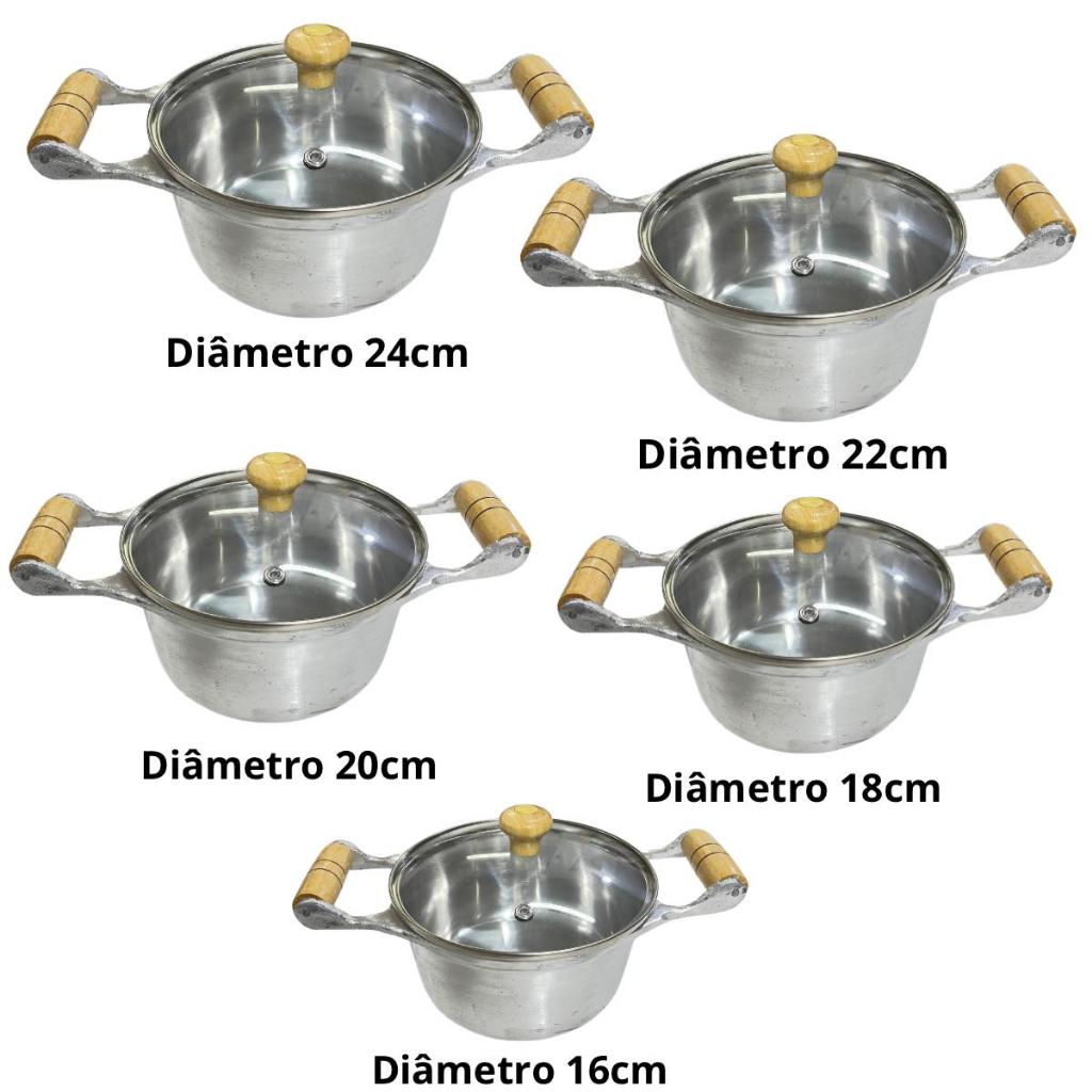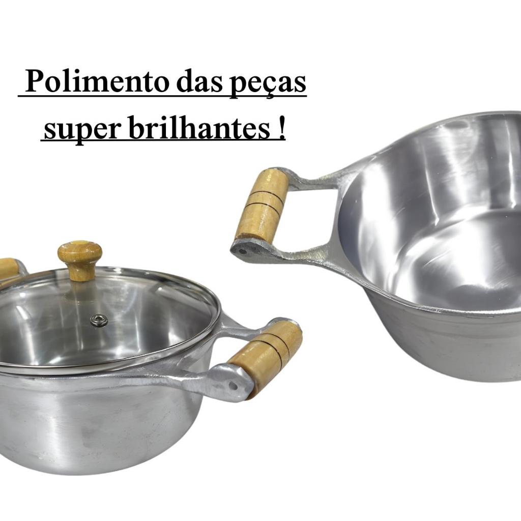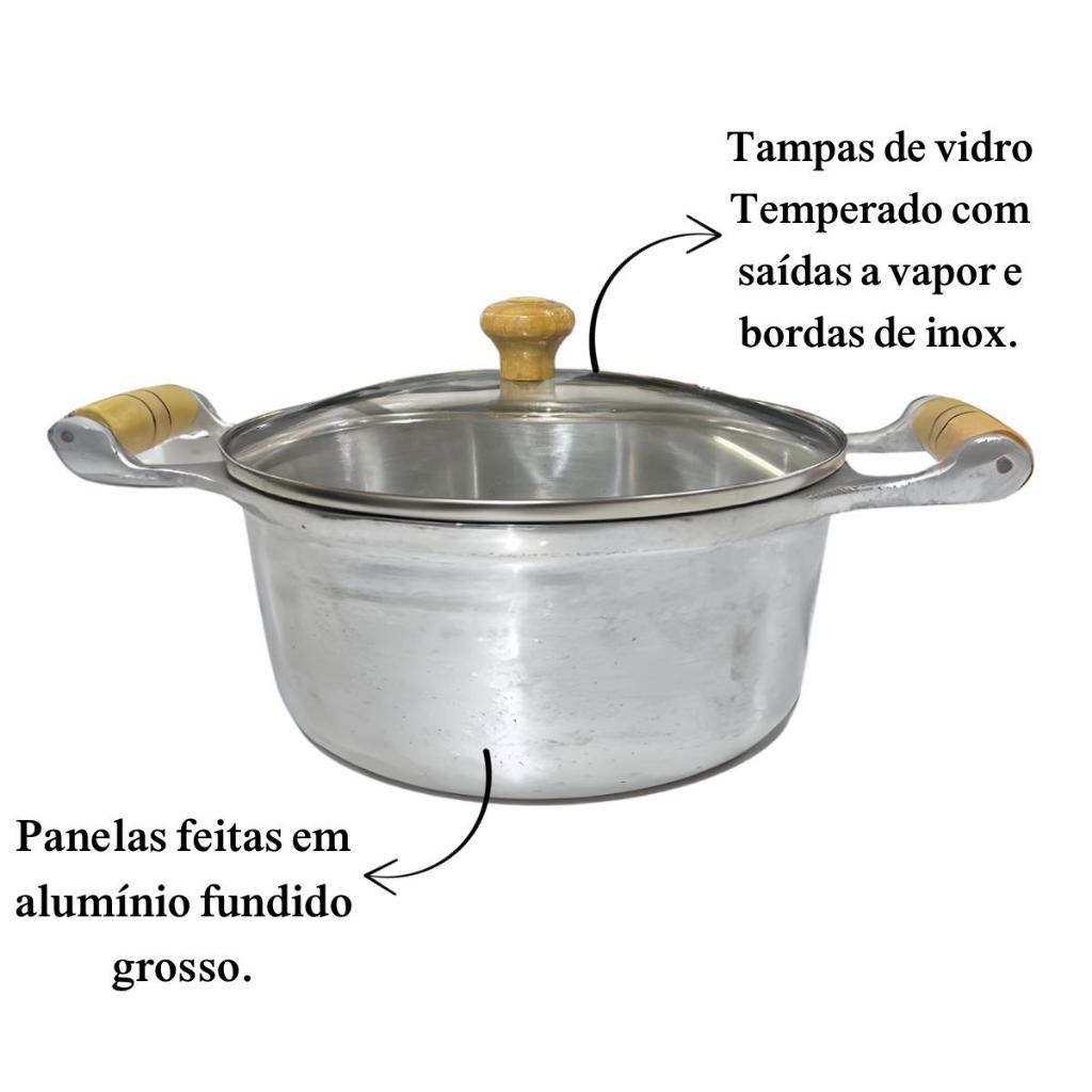 Jogo de Panelas Alumínio Batido Fundido 5 Peças Polida Grossa com Tampa de Vidro