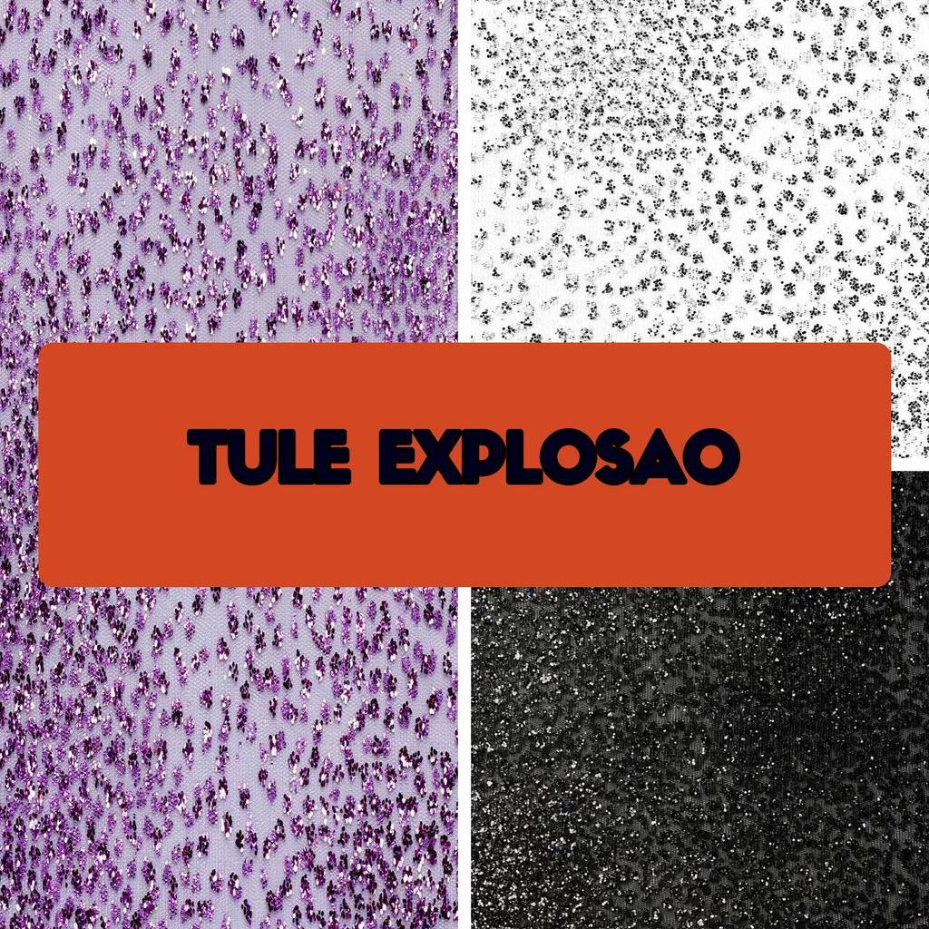 6 Metros Tecido Tule Explosao de Glitter Flocado de Poliamida (6m x 1.50m)