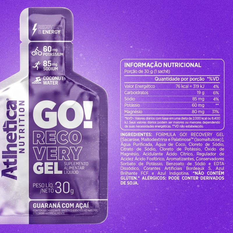 Gel Carb Go Recovery Atlhetica Energia Endurance Cx 10x30g