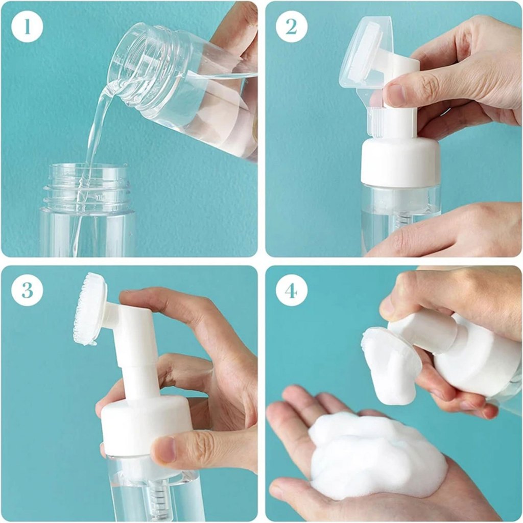 Frasco Pump Espumador Facial Skin Care Com Escova De Silicone Limpeza Cilios 100 ML
