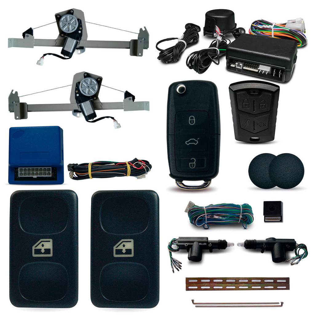 Kit Vidro Elétrico Gol Saveiro Parati e Voyage Quadrado Trava + Alarme Com chave
