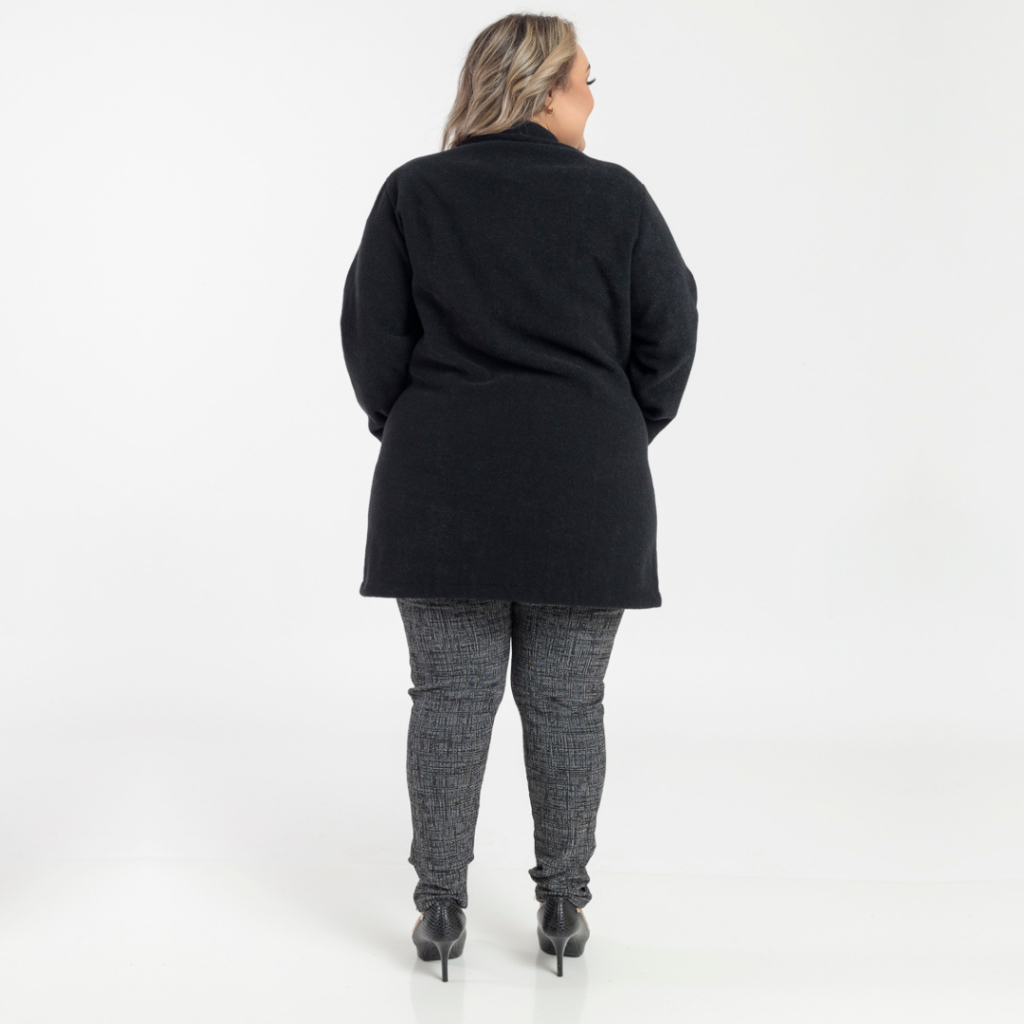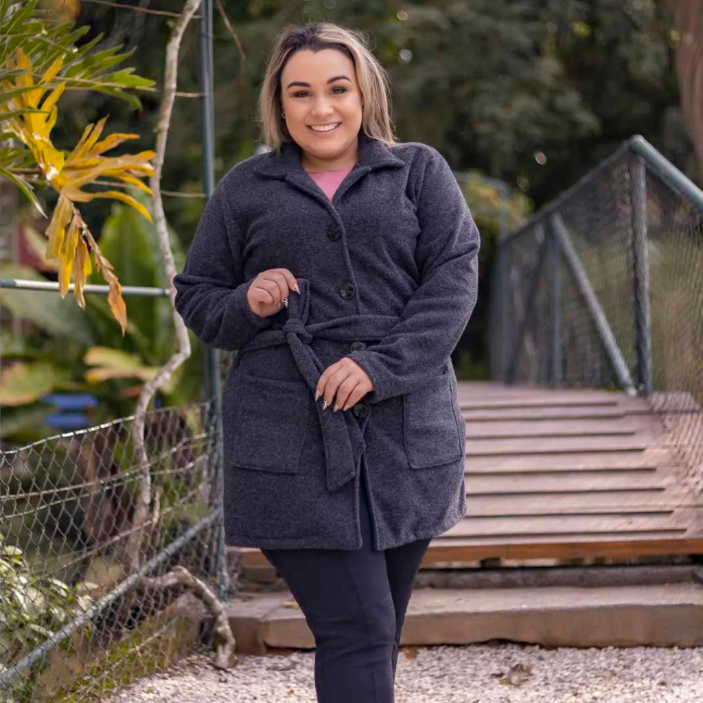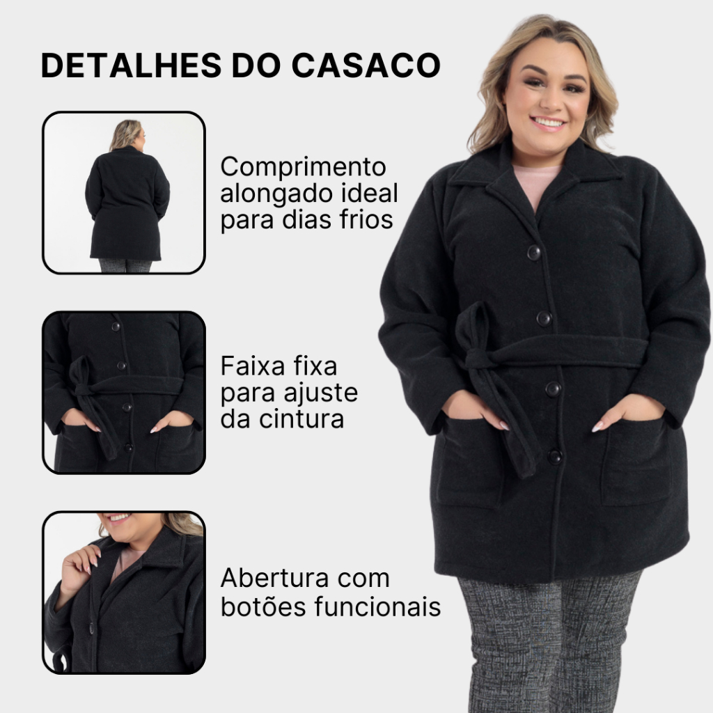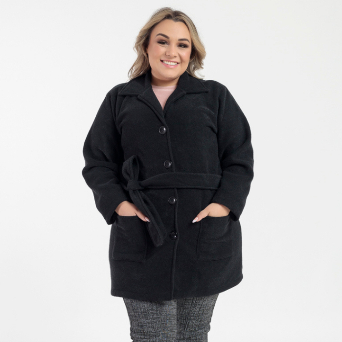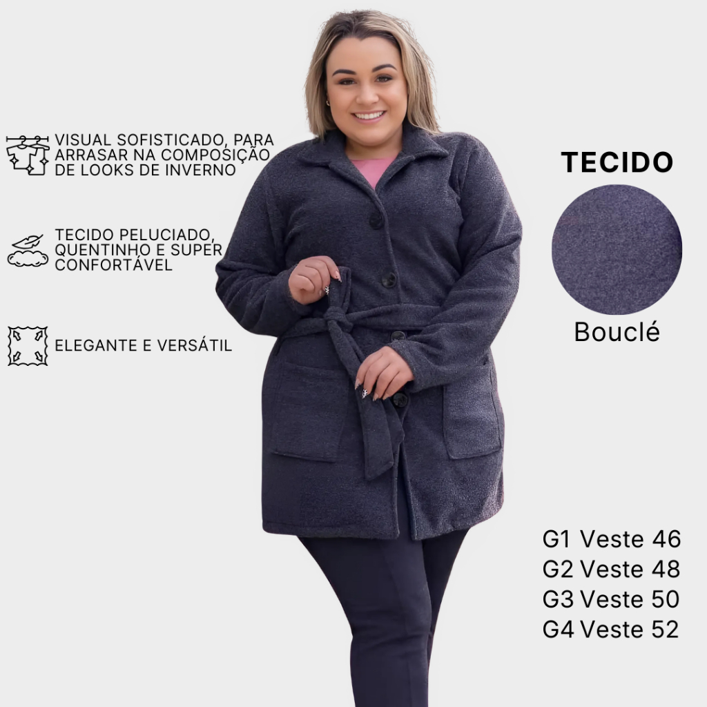 Casaco Sobretudo Plus Size Feminino Inverno Peluciado em Bouclé com Bolso