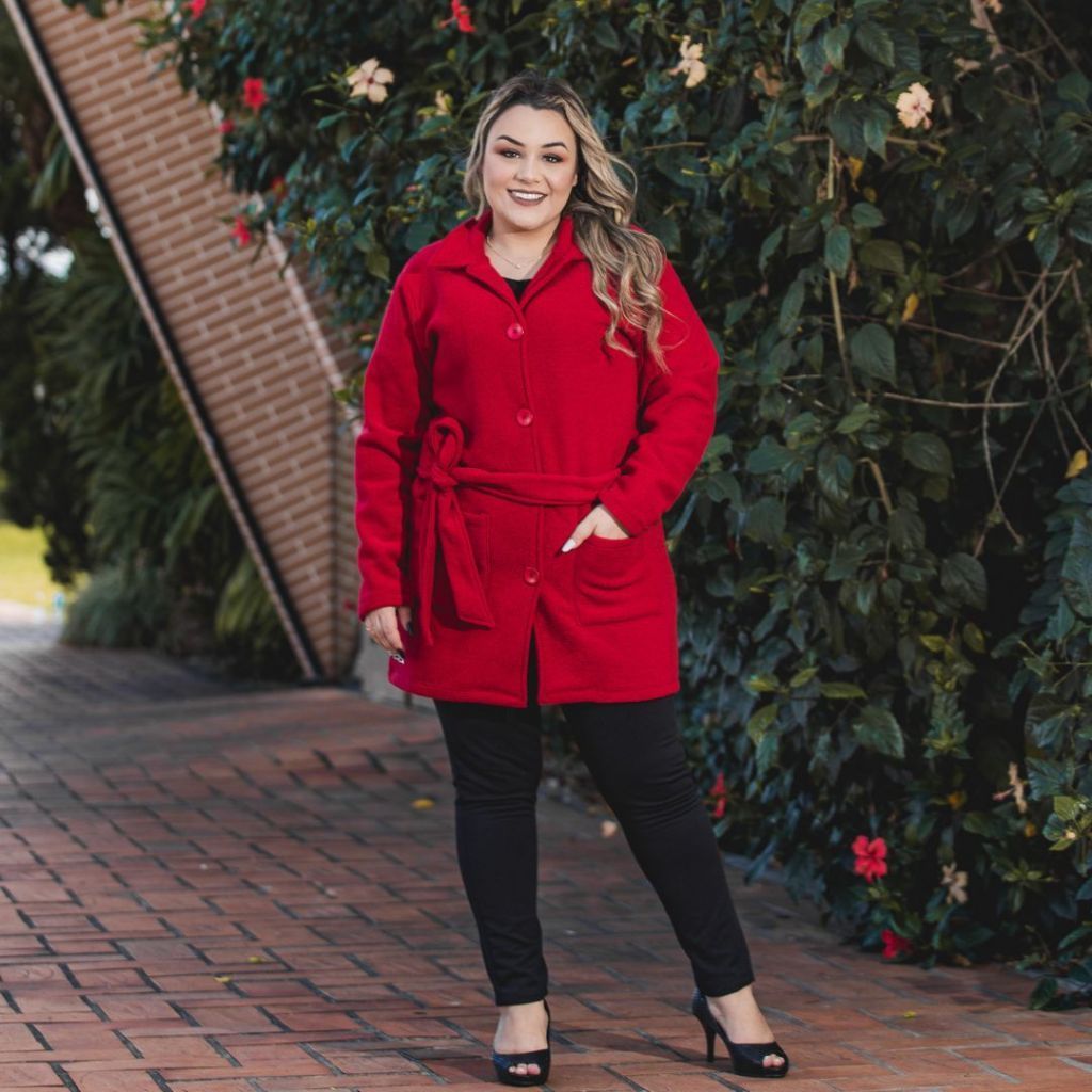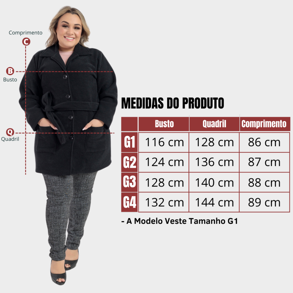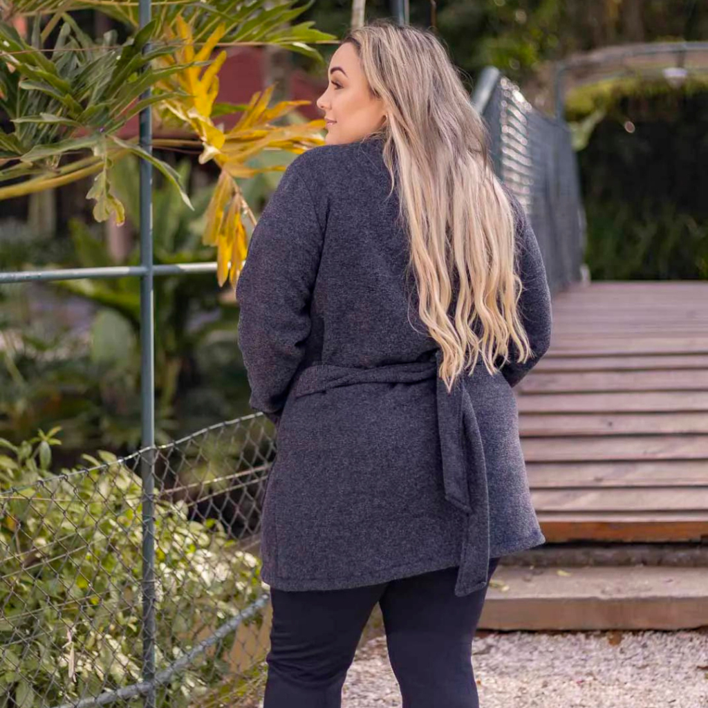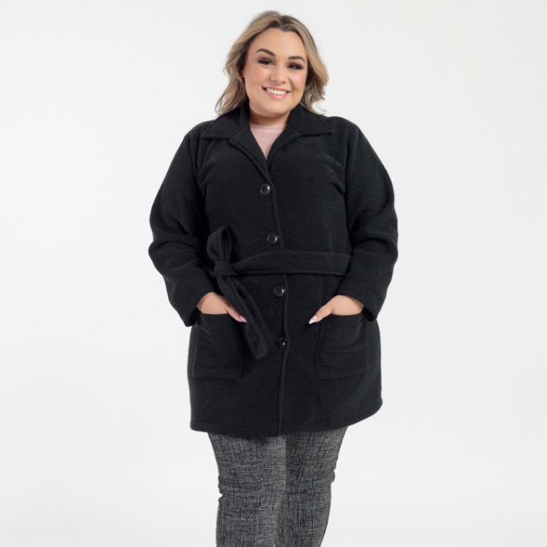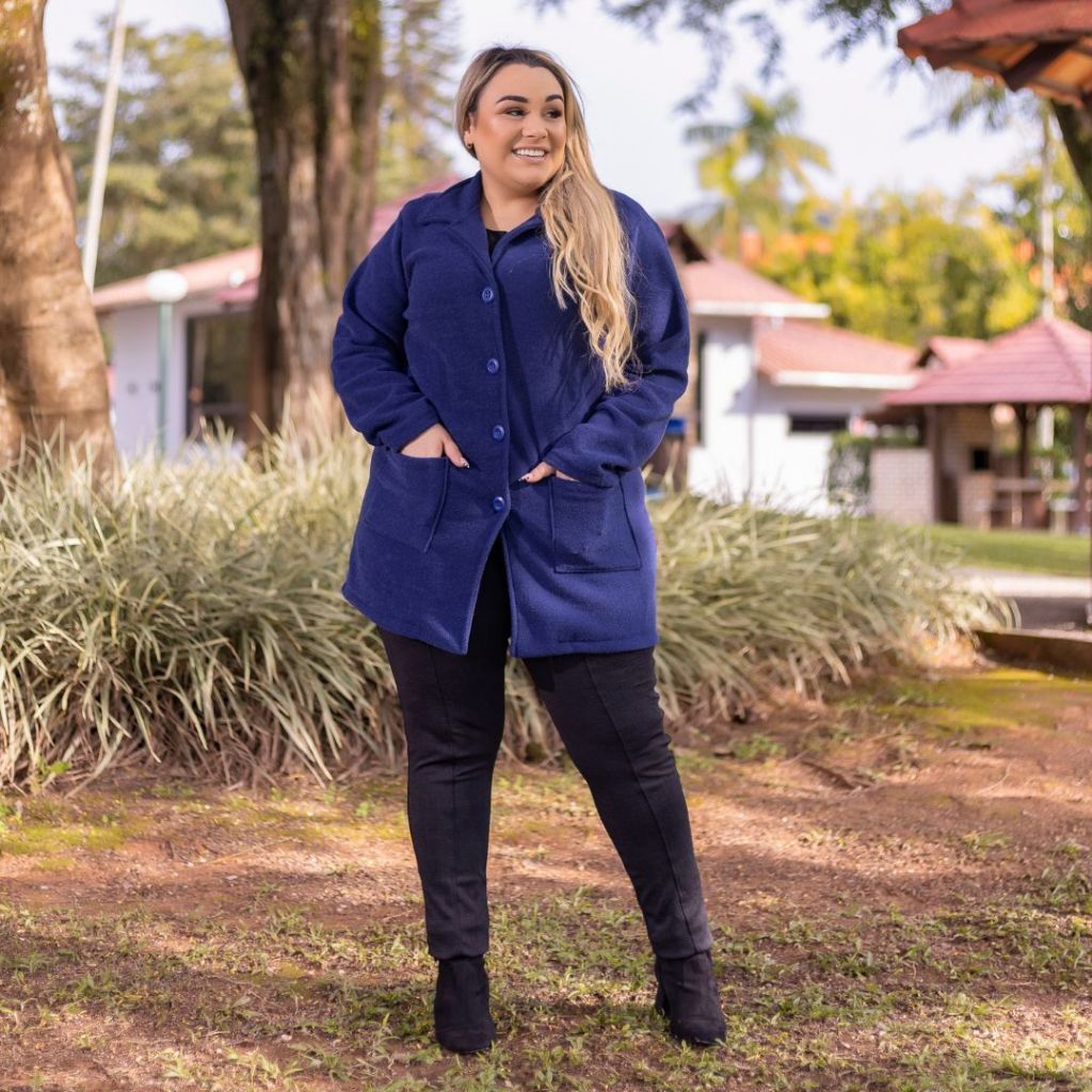 Casaco Sobretudo Plus Size Feminino Inverno Peluciado em Bouclé com Bolso
