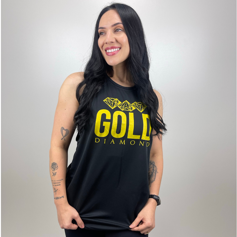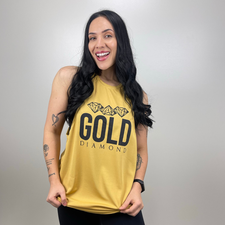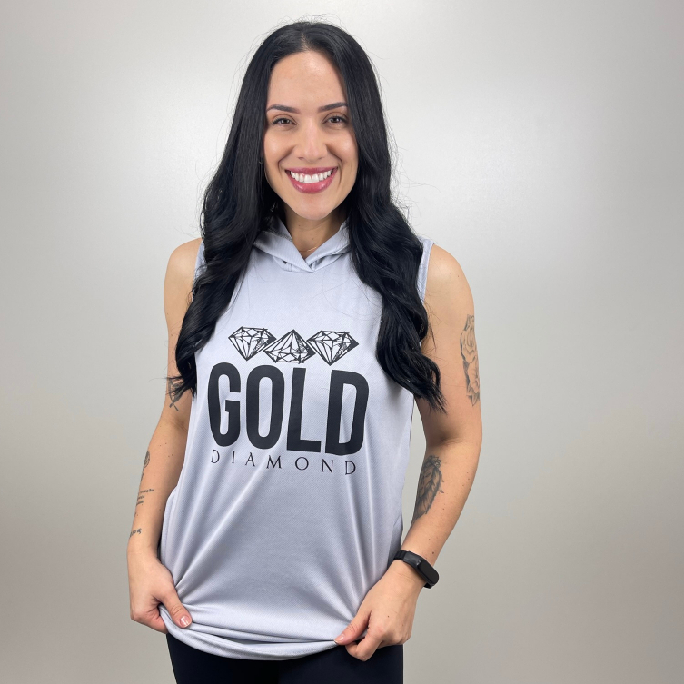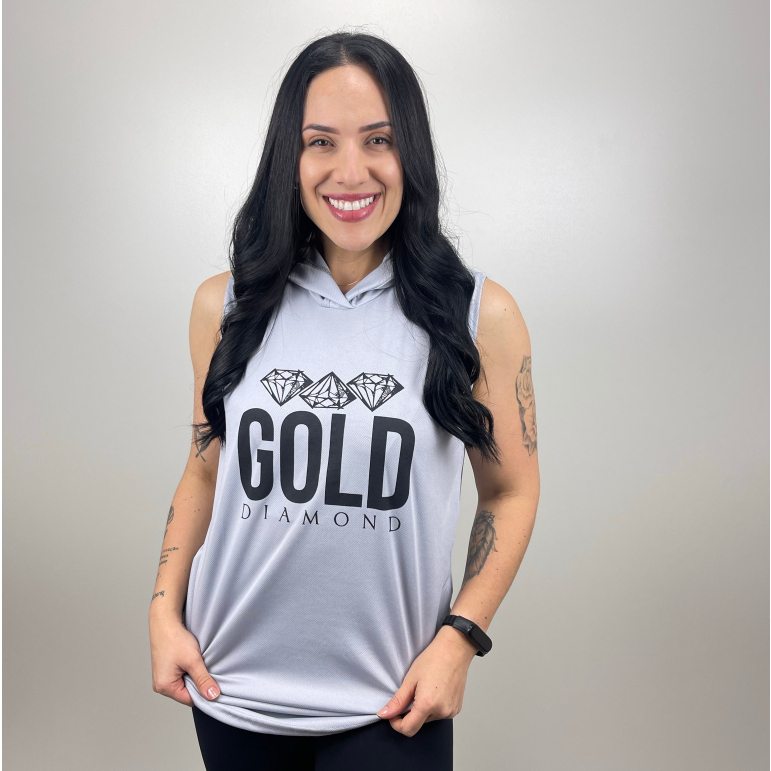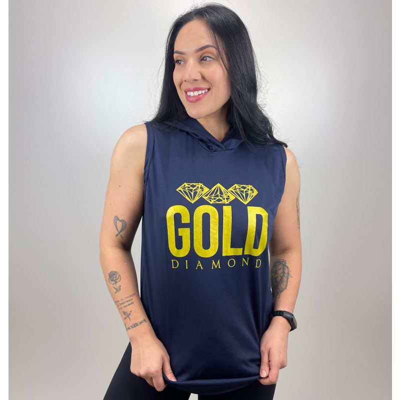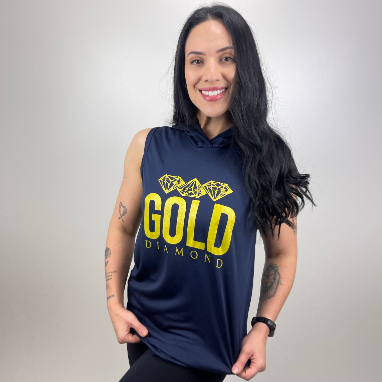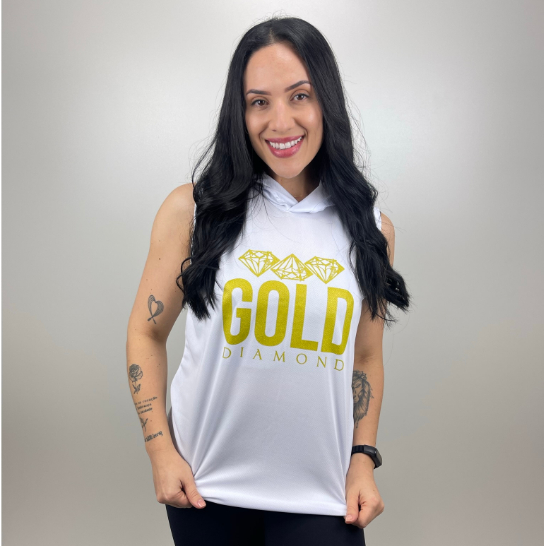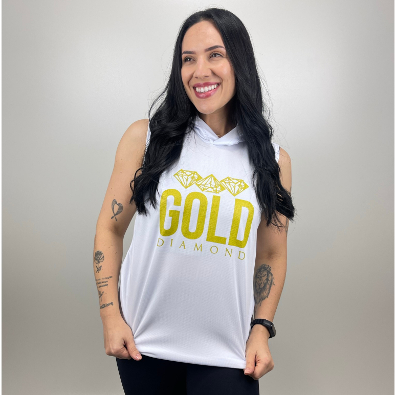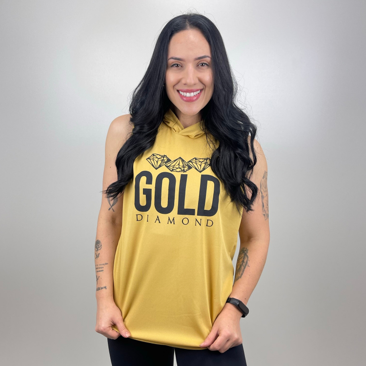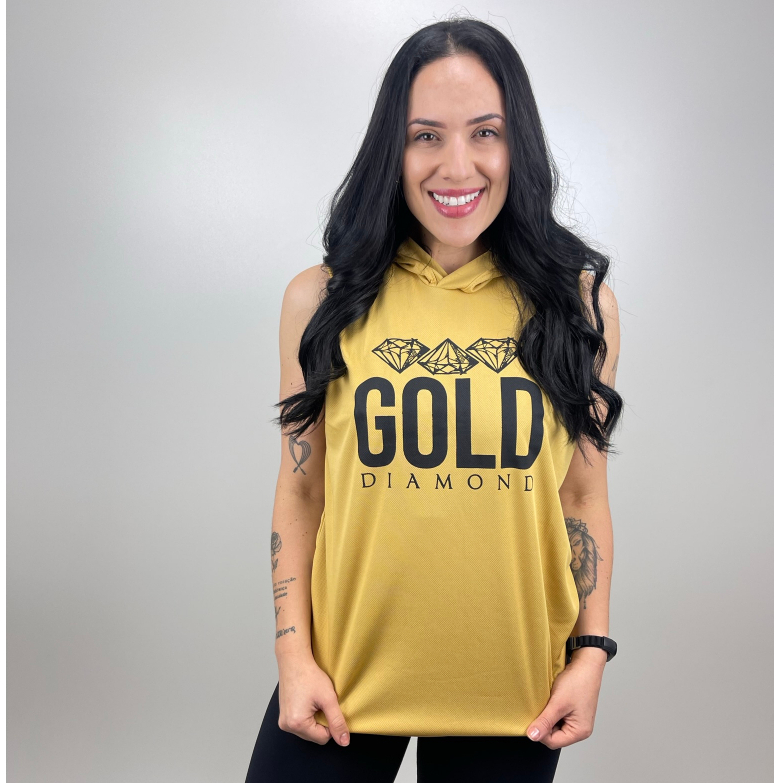 Regata Feminina com Capuz Longline em Dry Fit Secagem Rápida - Gold Diamond